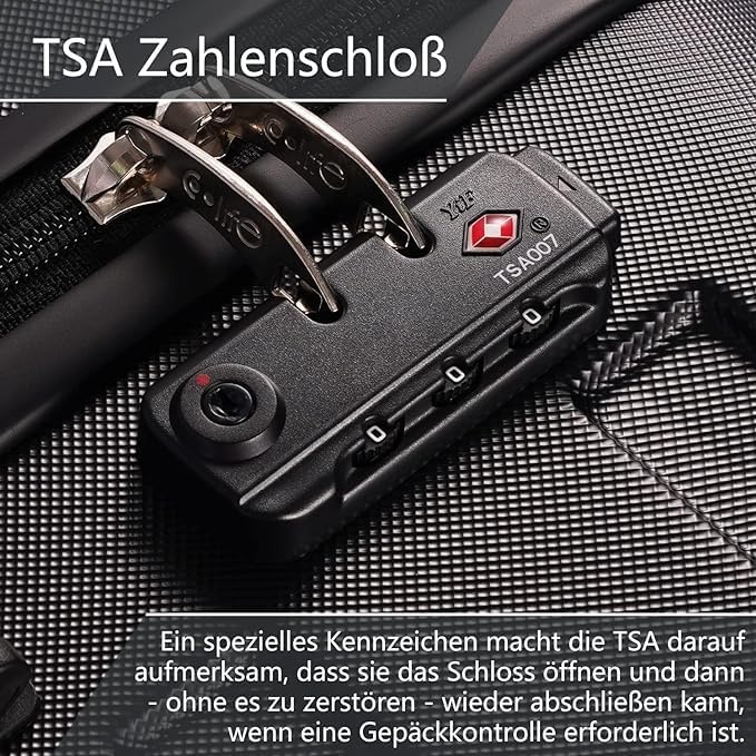- TSA Zahlenschloss: Mit integriertem Kombinationsschloss ist es einfach und bequem, Ihren Koffer während der Reise zu sperren und zu entsperren. Schloss kann von den Sicherheitsbeamten mit einem Generalschlüssel geöffnet und unbeschadet verschlossen