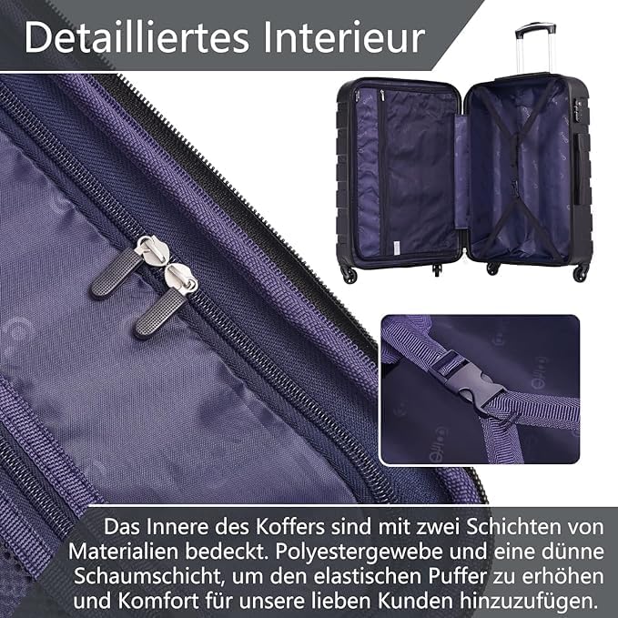 - BESTE QUALITÄT AUCH BESTER PREIS MIT ZWEI JAHREN GARANTIE: Unsere Koffer sind mit hochwertigen Materialien gut gemacht und jeder Koffer durchläuft strenge Qualitätskontrolle, wie Drop-Loading-Test, Ziehtest des Griffs, Wheel Rolling Test, Zipper Test