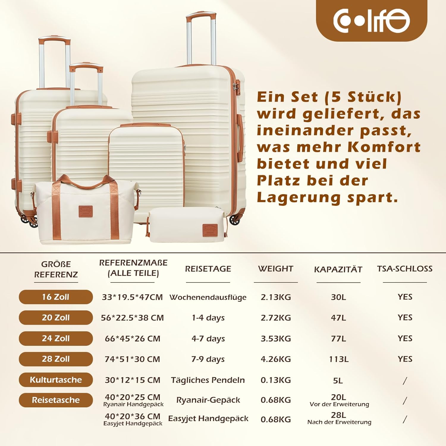 - Koffer-Set 6tlg:Dieses Reisekoffer Set enthält 1 x 16-Zoll-Koffer, 1 x Handgepäck, 1 x Mittelgrosser Koffer, 1 x Grosser Koffer, 1 x erweiterbare Reisetasche, 1 x Kulturbeutel. von einer einmaligen Auswahl können die Bedürfnisse von Ihrer Reise