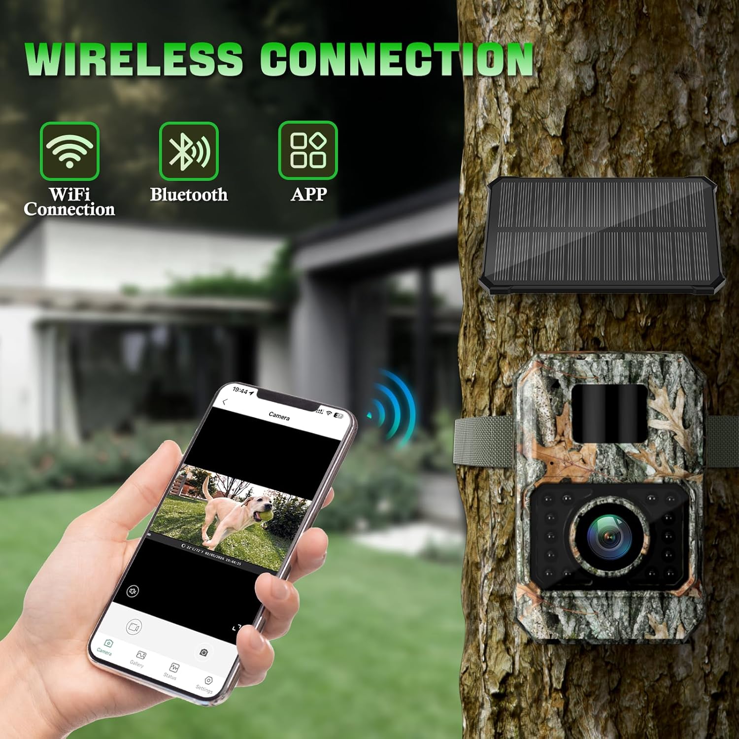 - 📶WiFi-Konnektivität und neue Funktionen: Die WLAN Wildkamera unterstützt die Fernsteuerung über die App, mit der Sie spannende Fotos und Videos in Echtzeit auf Ihrem Handy ansehen können. Die WLAN Wildkamera verfügt auch über anpassbare