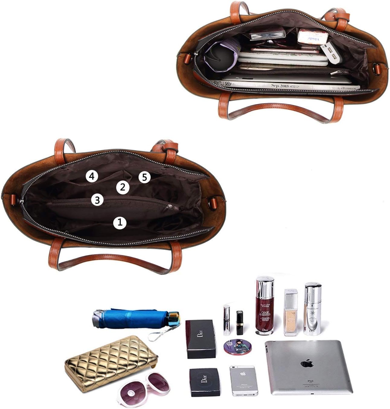 Coolives Tote Einkaufstasche aus PU-Leder für Damen, vertikale Handtaschen, Schultertasche, mit Schu