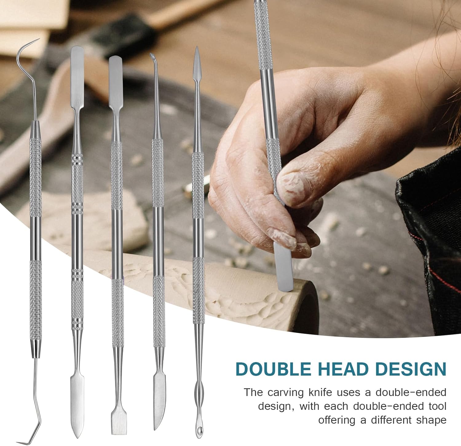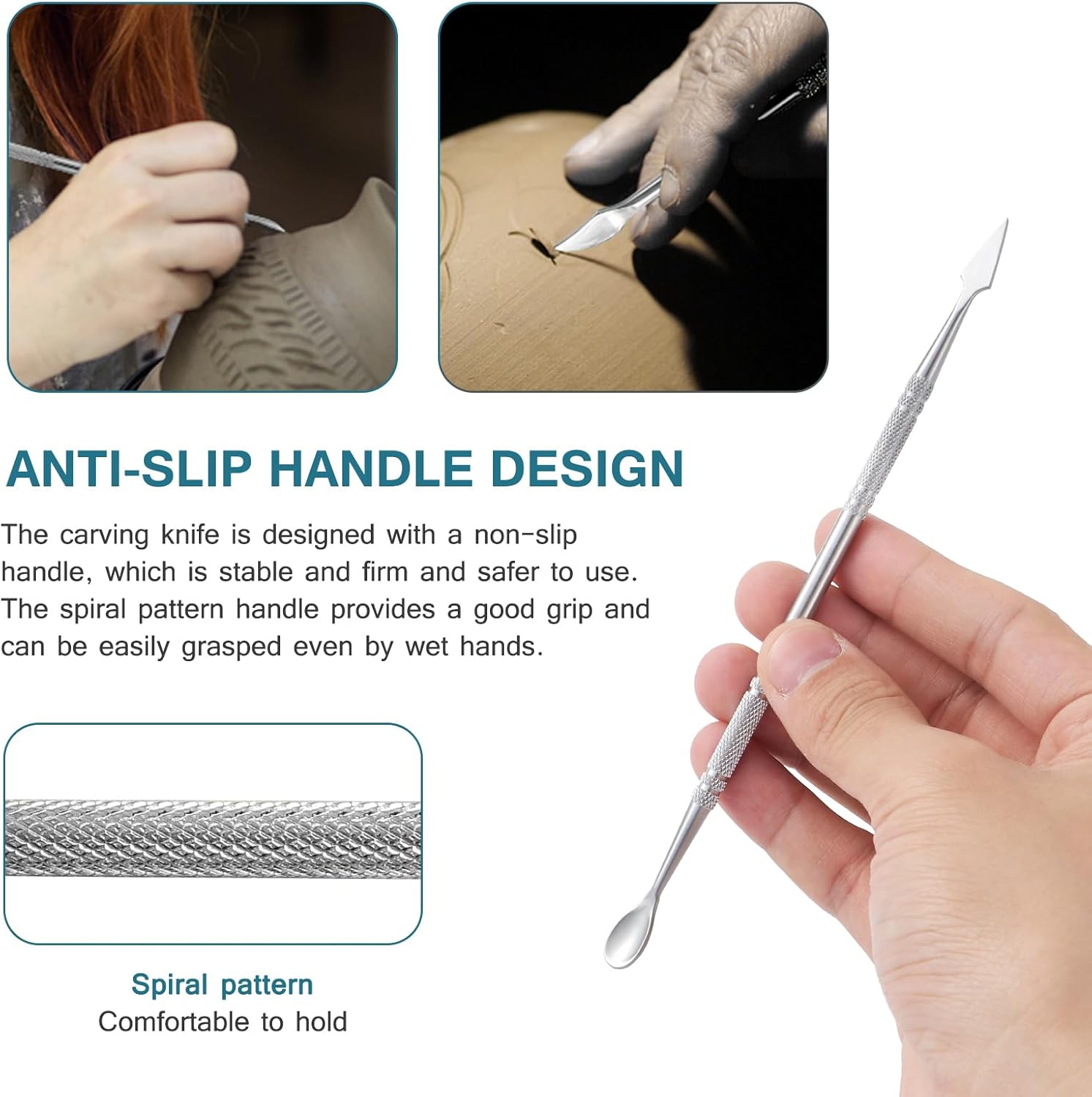 - 💎【Hohe Qualität】Doppelseitiges Wachsschnitzwerkzeug wurde aus hochwertigem 410 Edelstahl hergestellt, kann leicht hohle Schnitzerei, Chipschnitzerei, Reliefschnitzerei machen; starker Griff, wird keine Blase verursachen. Werkzeuge sind