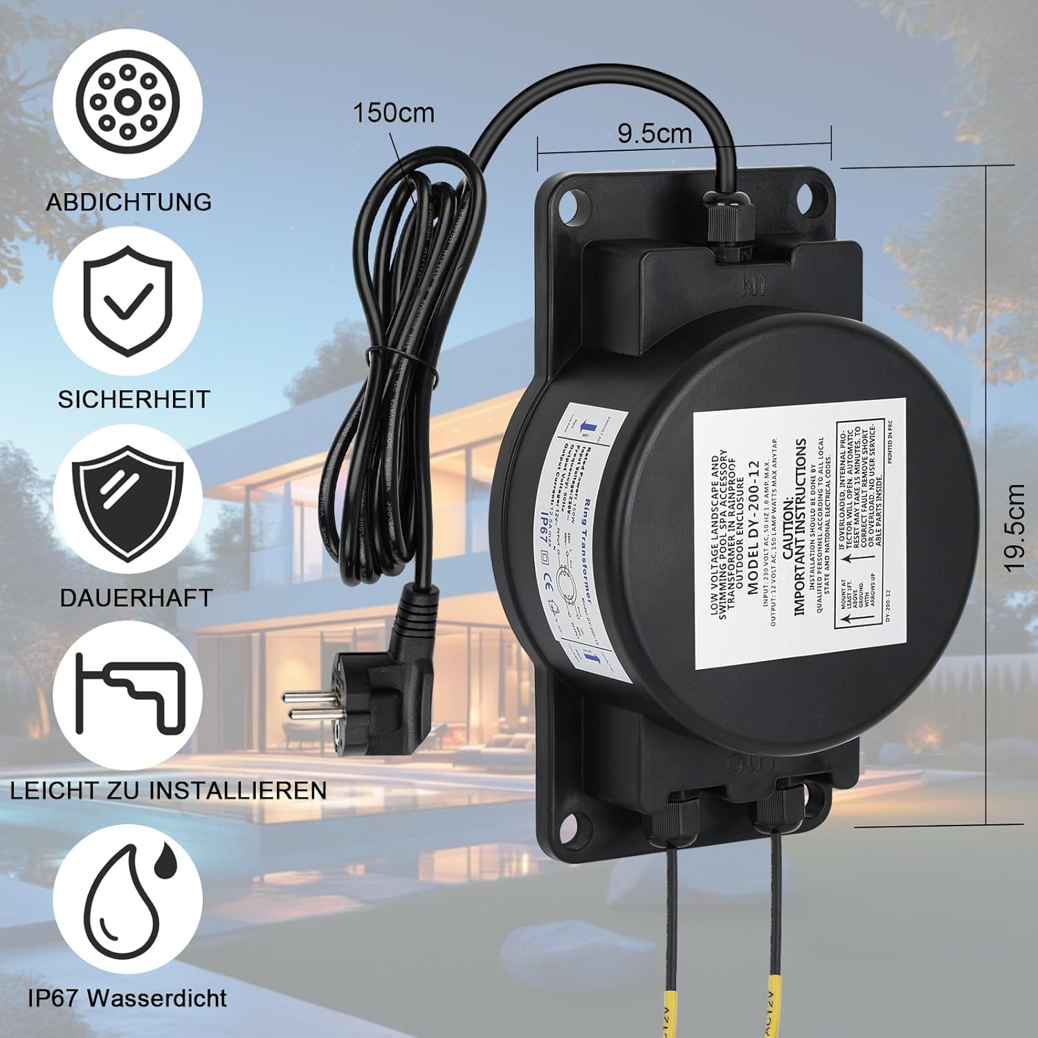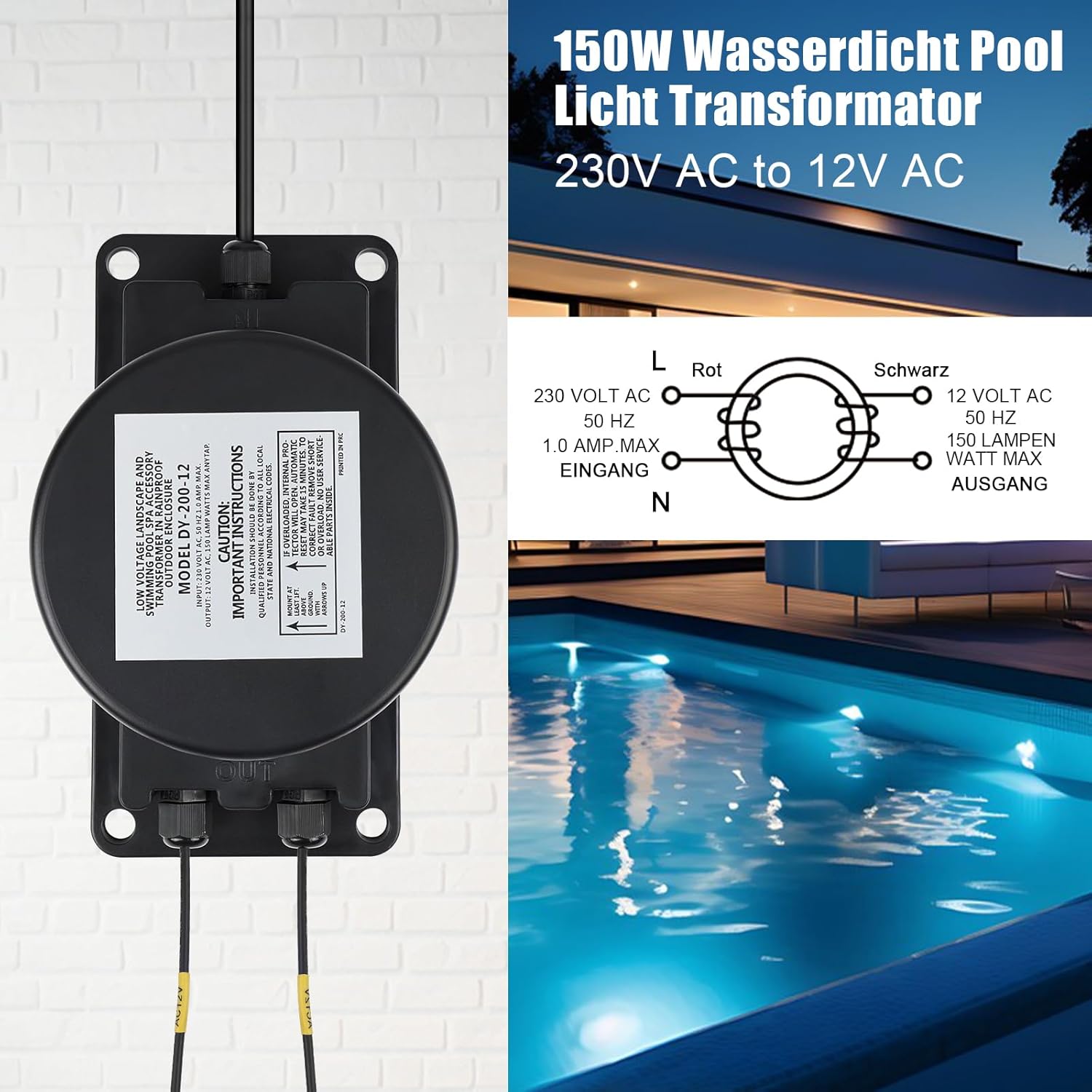 - 【Breite Anwendung】Poolbeleuchtung Transformator für den sicheren Betrieb von 12 Volt Beleuchtungslasten für Unterwasser Poolbeleuchtung, Landschaftsbeleuchtung, Gartenbeleuchtung, Springbrunnen, Spa, Tauchleuchten, dekorative Beleuchtung für