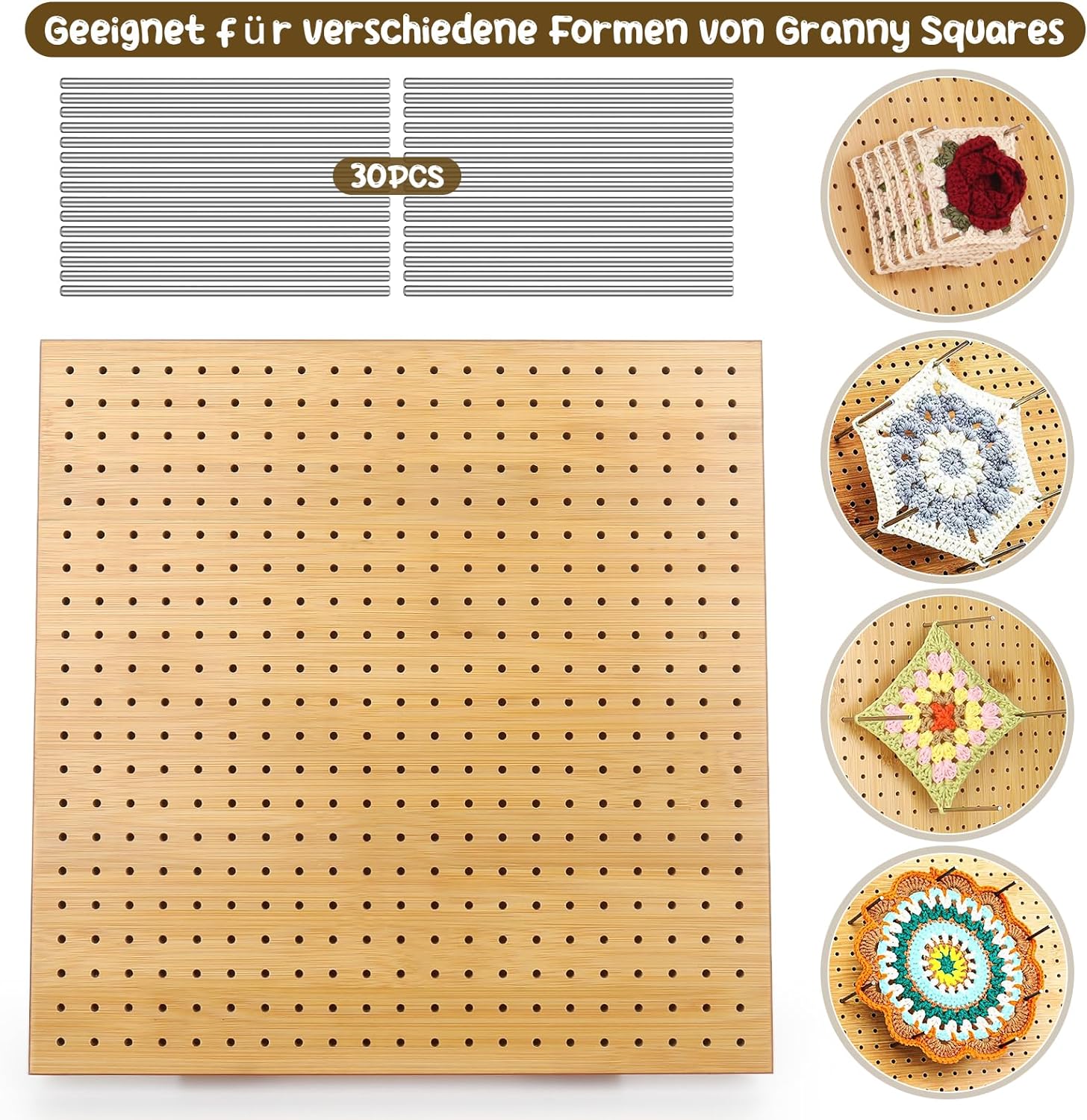 - [Grosse Grösse Granny Square Spanner] Das Blocking Board wird aus hochwertigem Bambus. Die Grösse beträgt 29 x 29 cm, Grösser als jede normale Schallwand und die Dicke beträgt 1,5 cm, Zum spannen Granny Squares sehr passend. Dieses gut gearbeitetes