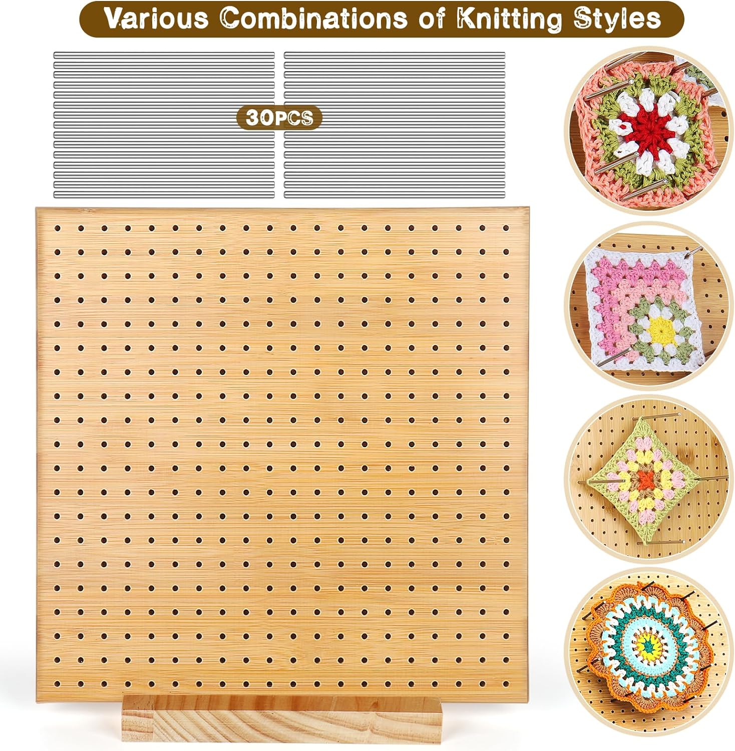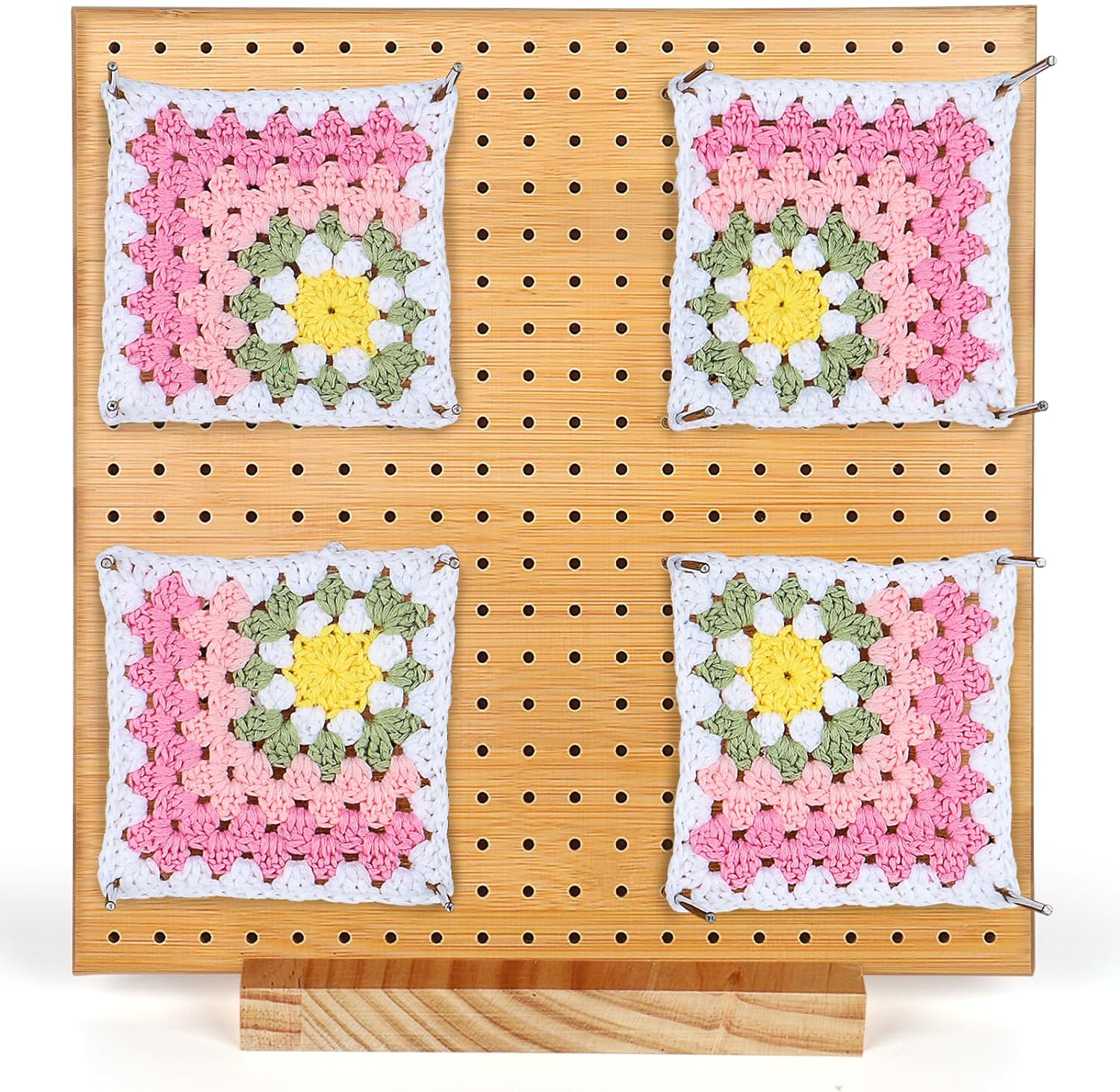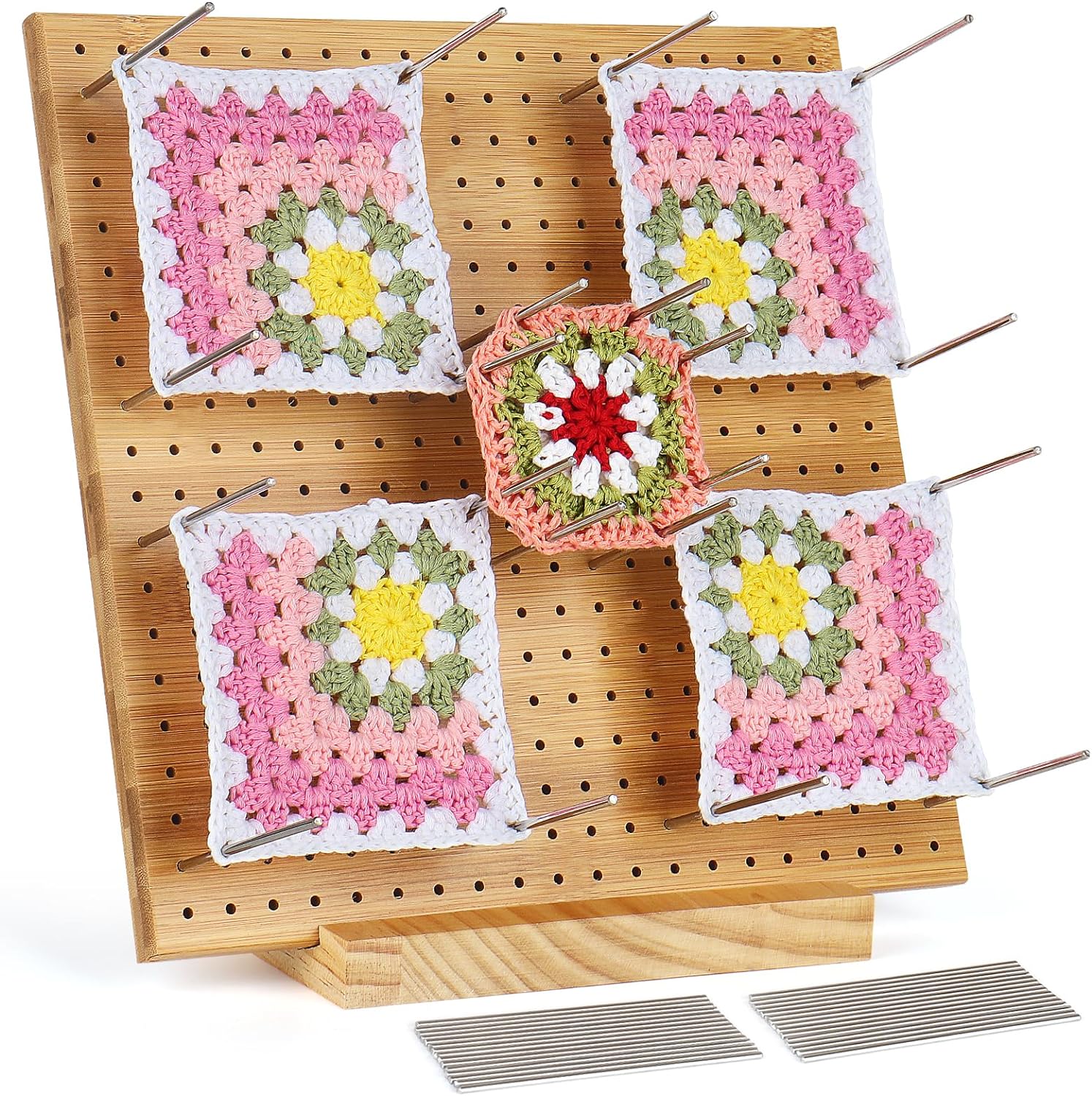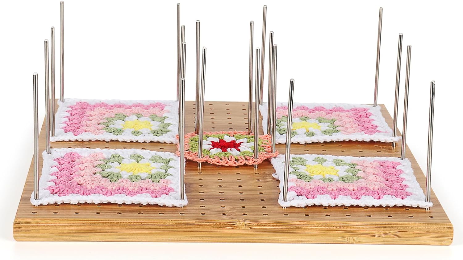 - [Grosse Sperrbrett für Mehrere Quadrate oder Blumen Häkelstück] Sie können problemlos mehrere Stapel von 20 cm Quadraten auf demselben Block platzieren. Er wird mit 30 langen Stiften für Ihre Stapel geliefert. Sie können mindestens 6 Quadrate