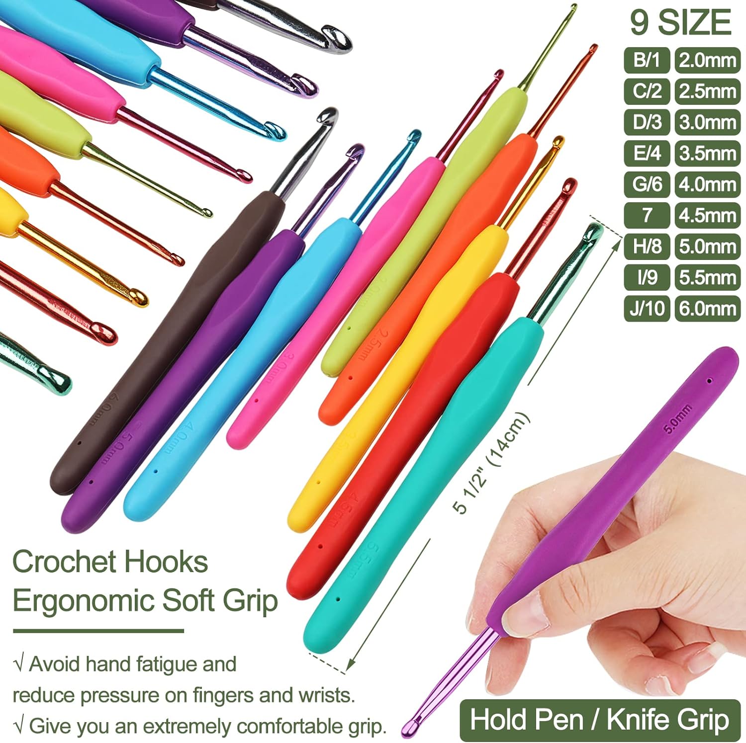 - ❤ [Hochwertige Häkelnadeln zum Häkeln] Ergonomische Häkelnadeln mit gemütlich Gummi griffen, Ermüdung der Hände zu vermeiden und den Druck auf Finger und Handgelenke zu reduzieren. Der gepolsterte Griff und die leichte Häkelarbeit sorgen
