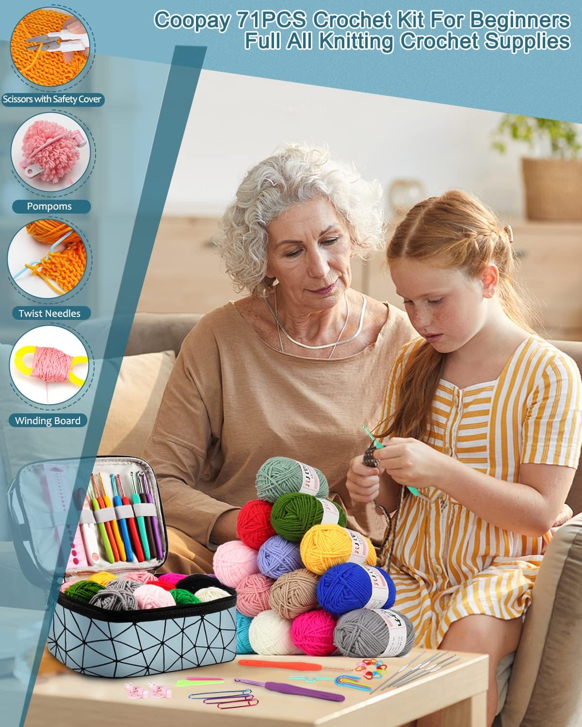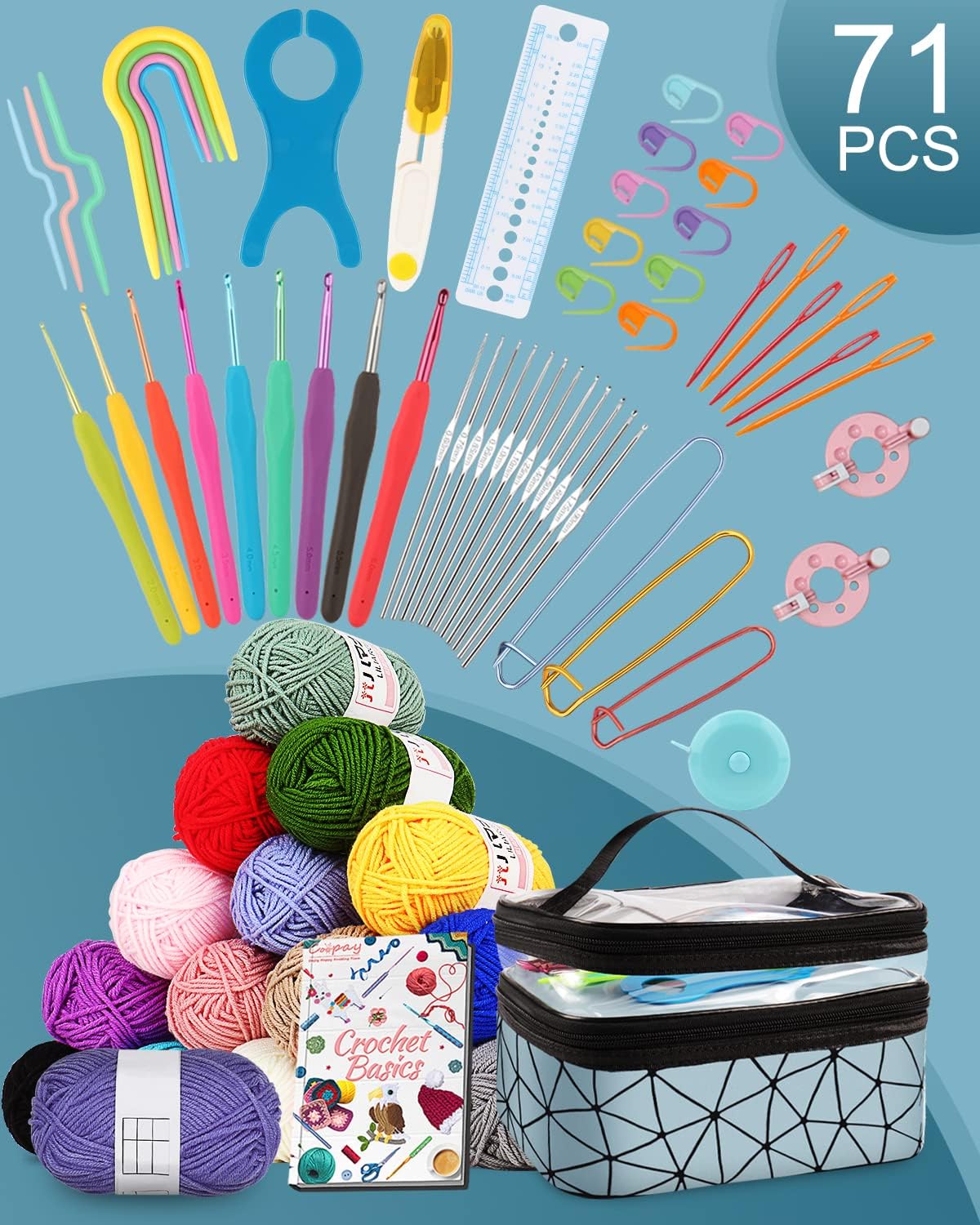 - ❤ [71 Stück Komplettes Häkelset für Anfänger] Anfänger Häkelnadel Set mit allem, was Sie brauchen, um mit dem Häkeln für Kinder oder Erwachsene zu beginnen, die gerade erst anfangen, dieses Häkelhandwerk zu lernen! Das preiswerte Häkelset von