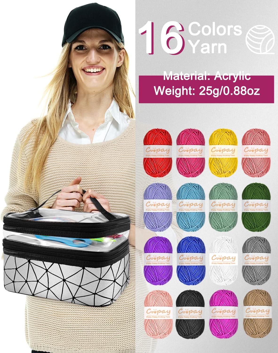 - ❤ [Praktisch Häkelnadel Set mit 16 Farben Wolle] Coopay Häkelset für Anfänger enthält bis zu 16 Wollknäuel, Ideal für kleine Schnellstartprojekte oder die Herstellung von Amigurumi, wenn Sie nur wenig, aber mehrfarbiges Garn verwenden müssen,