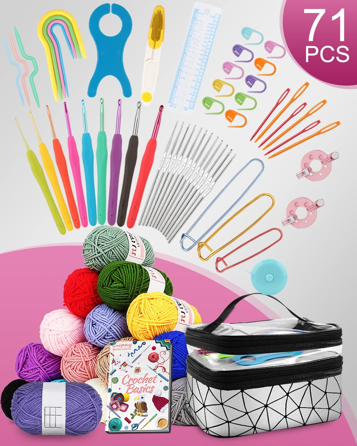 - ❤ [71 Stück Komplettes Häkelset für Anfänger] Anfänger Häkelnadel Set mit allem, was Sie brauchen, um mit dem Häkeln für Kinder oder Erwachsene zu beginnen, die gerade erst anfangen, dieses Häkelhandwerk zu lernen! Das preiswerte Häkelset von