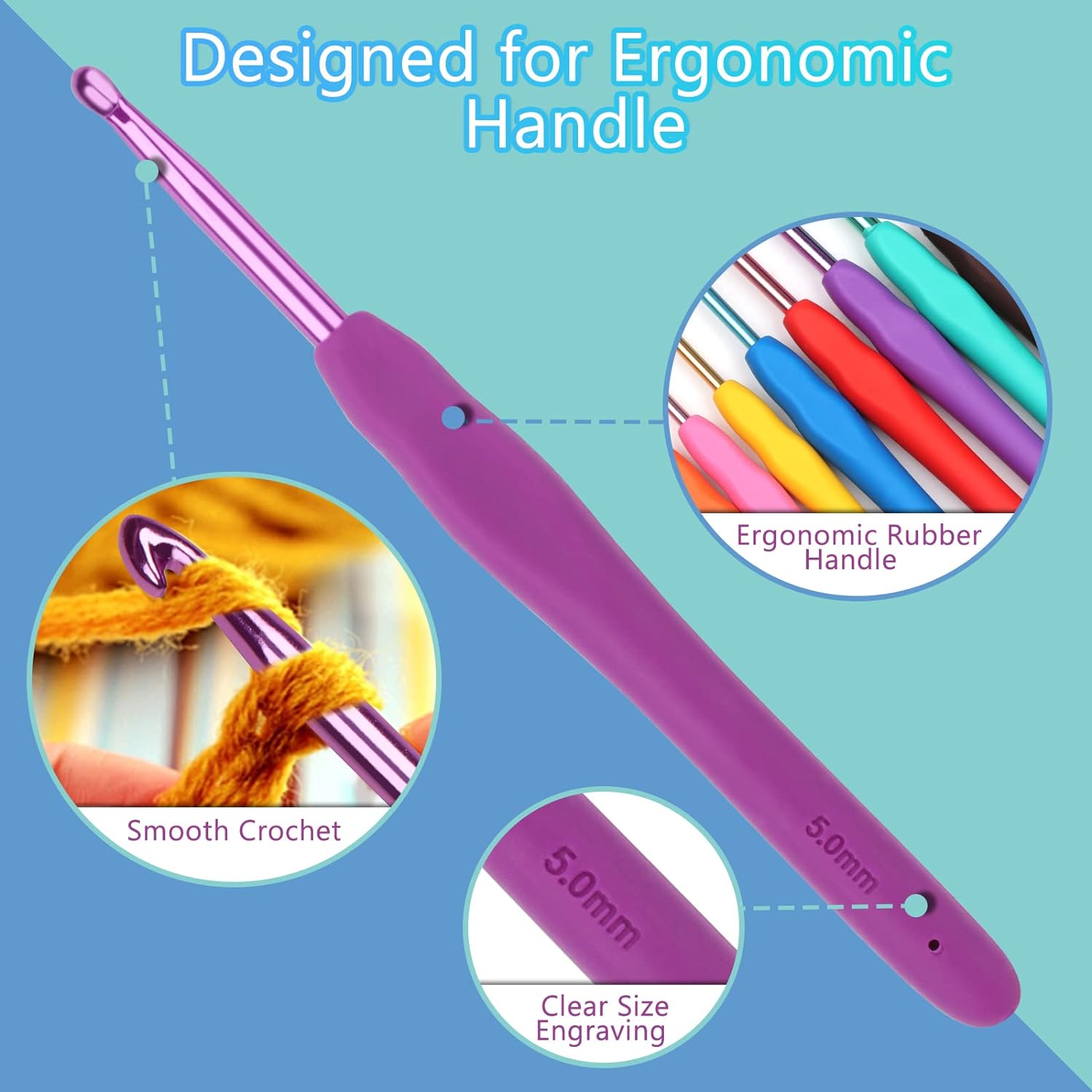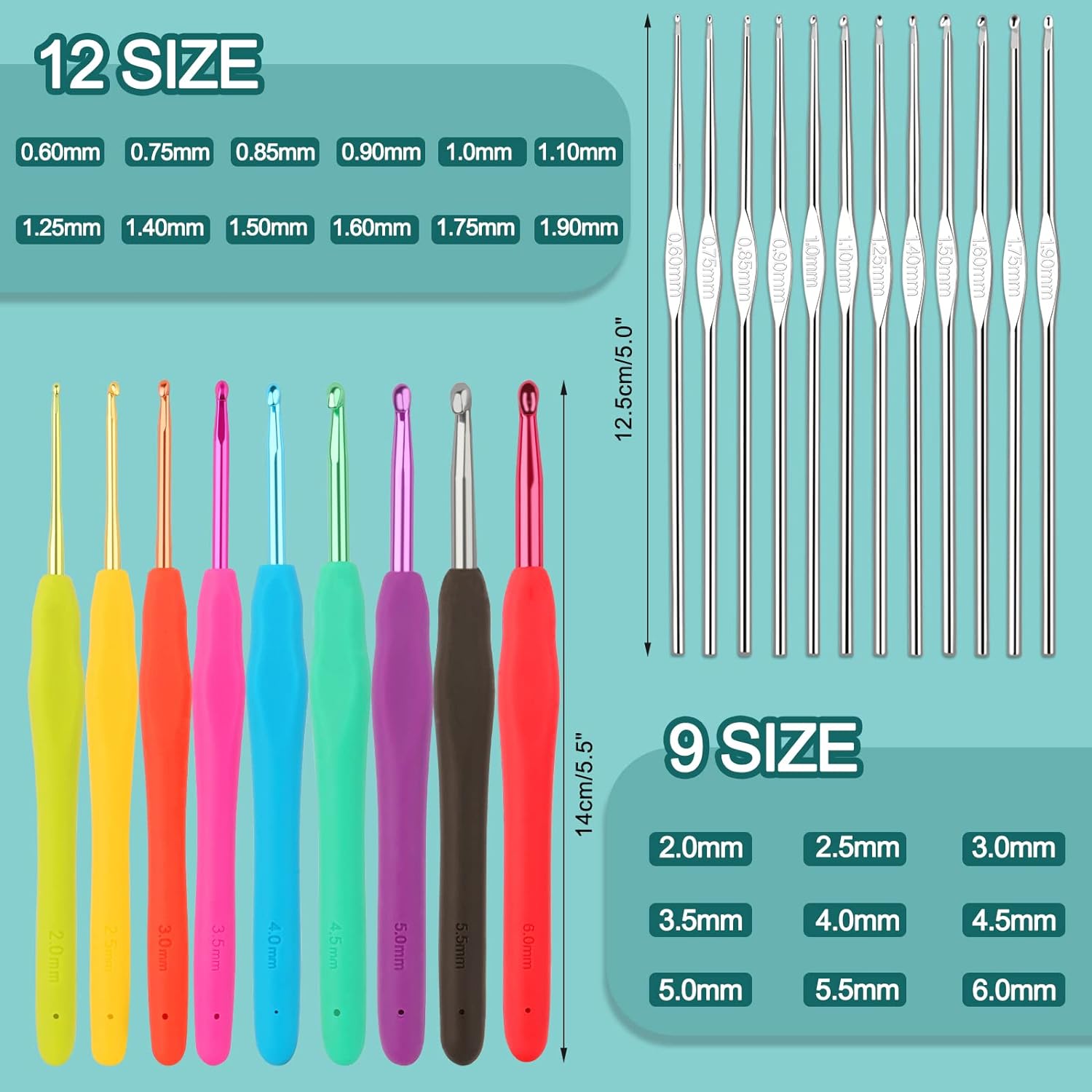 • Ergonomische Häkelnadeln Set und Spitze Häkelnadel: Der weiche Griff ist ergonomisch geformt, um eine bequeme Verwendung zu gewährleisten, Häkelnadeln für arthritische Hände.Vollmetall-Häkelnadeln sind stabil und fallen nicht leicht ab Und 12