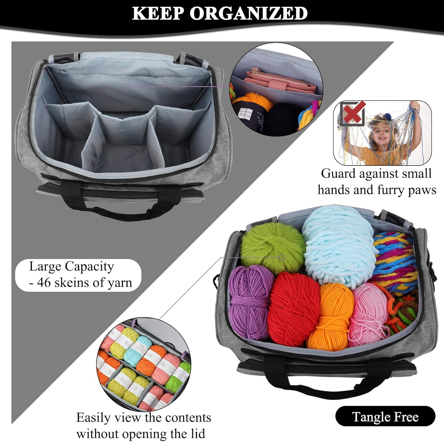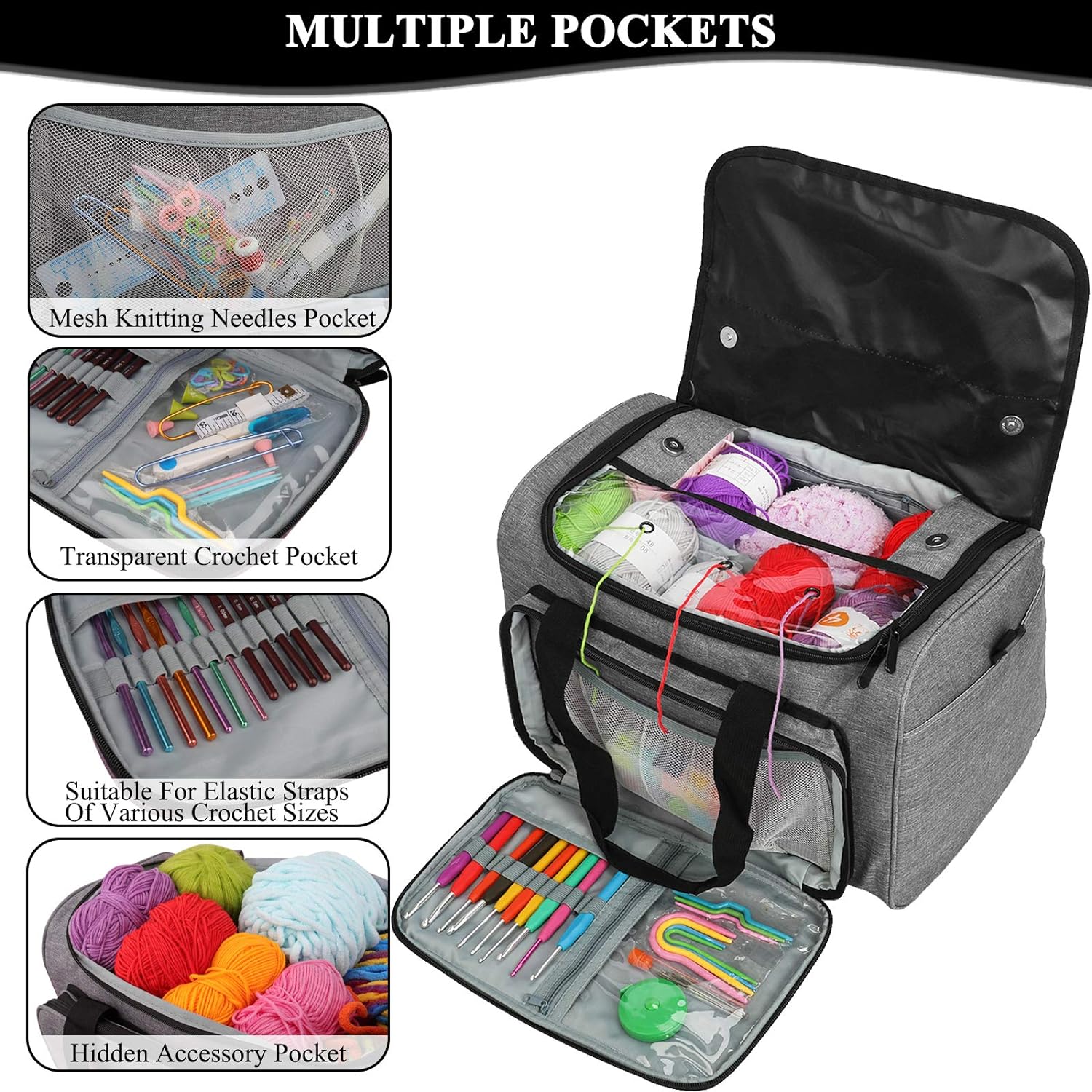- Grosse Kapazität Garn-Organisierer: Diese Tasche hat genug Stauraum für alle Ihre Strickutensilien. Grösse: 38,1 x 27,9 x 25,4 cm. Die Haupttasche kann perfekt unfertige Projekte aufbewahren, 4 Fächer in der Stricktasche, um mehrere Garnknäuel