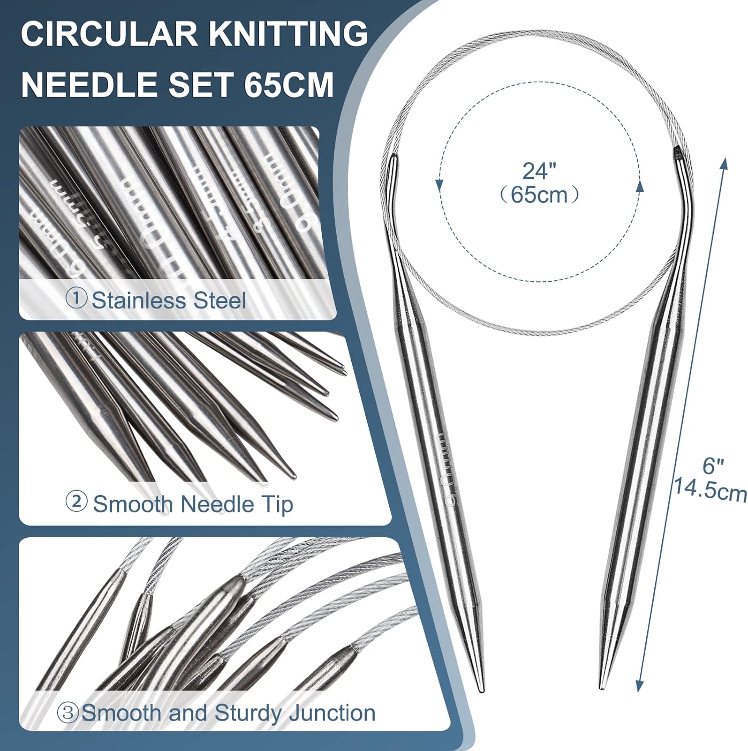 - [EINE REVOLUTIONÄRE ART DES STRICKENS – RUNDSTRICKNADEL AUS EDELSTAHLl] Jede Nadel ist an beiden Enden 14,5 cm lang. Die Gesamtlänge des Kabels einschliesslich der beiden Nadeln beträgt 60 cm. Das Kabel ist flexibel und haltbar, ohne zu knicken, und