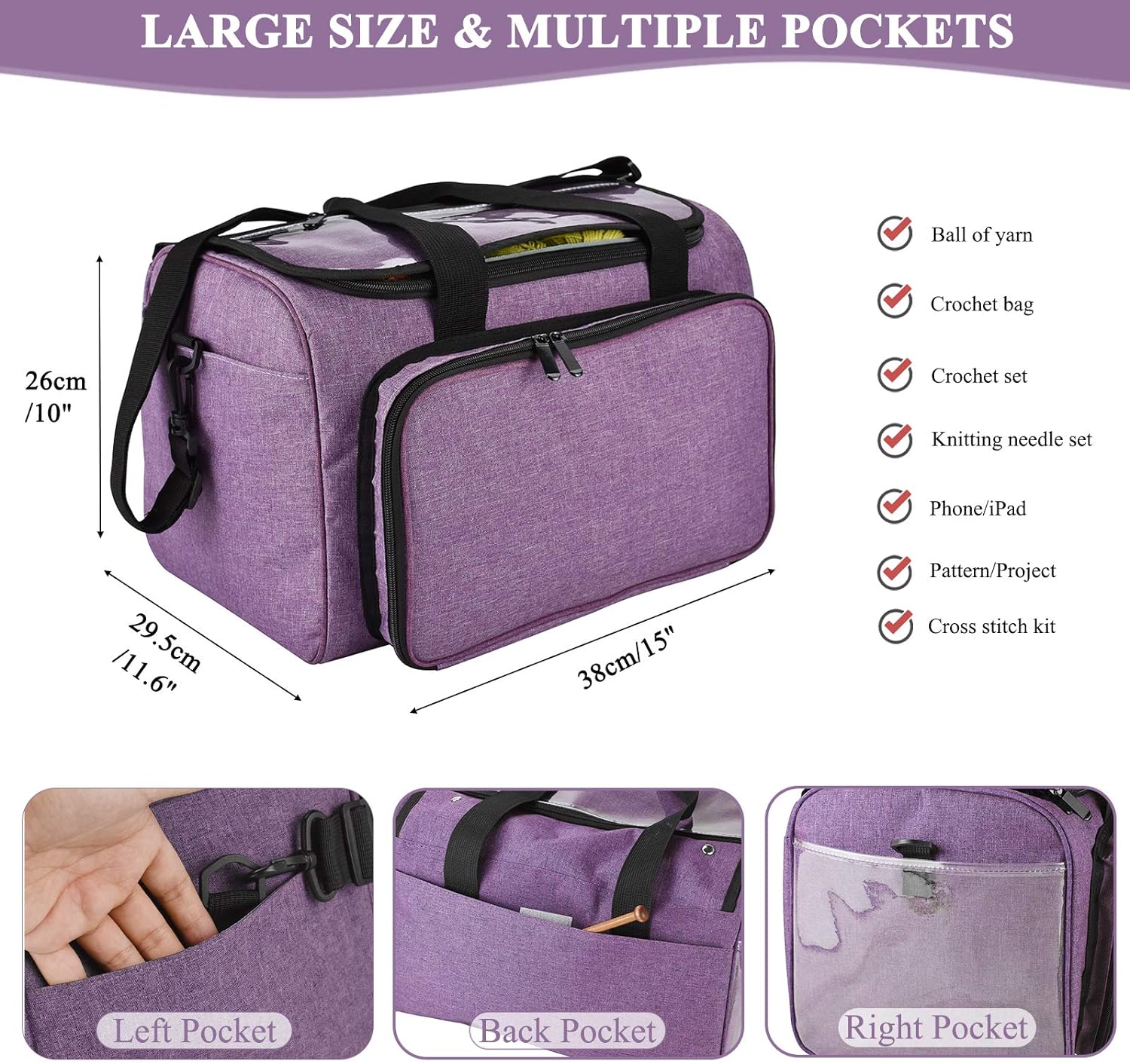 - Grosse Kapazität Garn-Organisierer: Diese Tasche hat genug Stauraum für alle Ihre Strickutensilien. Grösse: 38,1 x 27,9 x 25,4 cm. Die Haupttasche kann perfekt unfertige Projekte aufbewahren, 4 Fächer in der Stricktasche, um mehrere Garnknäuel