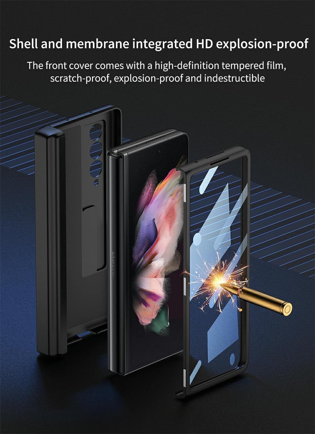 - Das Galaxy Z Fold 3-Telefongehäuse verfügt über eine All-Inclusive-Scharnier-6-Magnetpositionierung, die sofort adsorbiert und voller Technologie ist und sich nach Belieben zusammenfalten lässt.