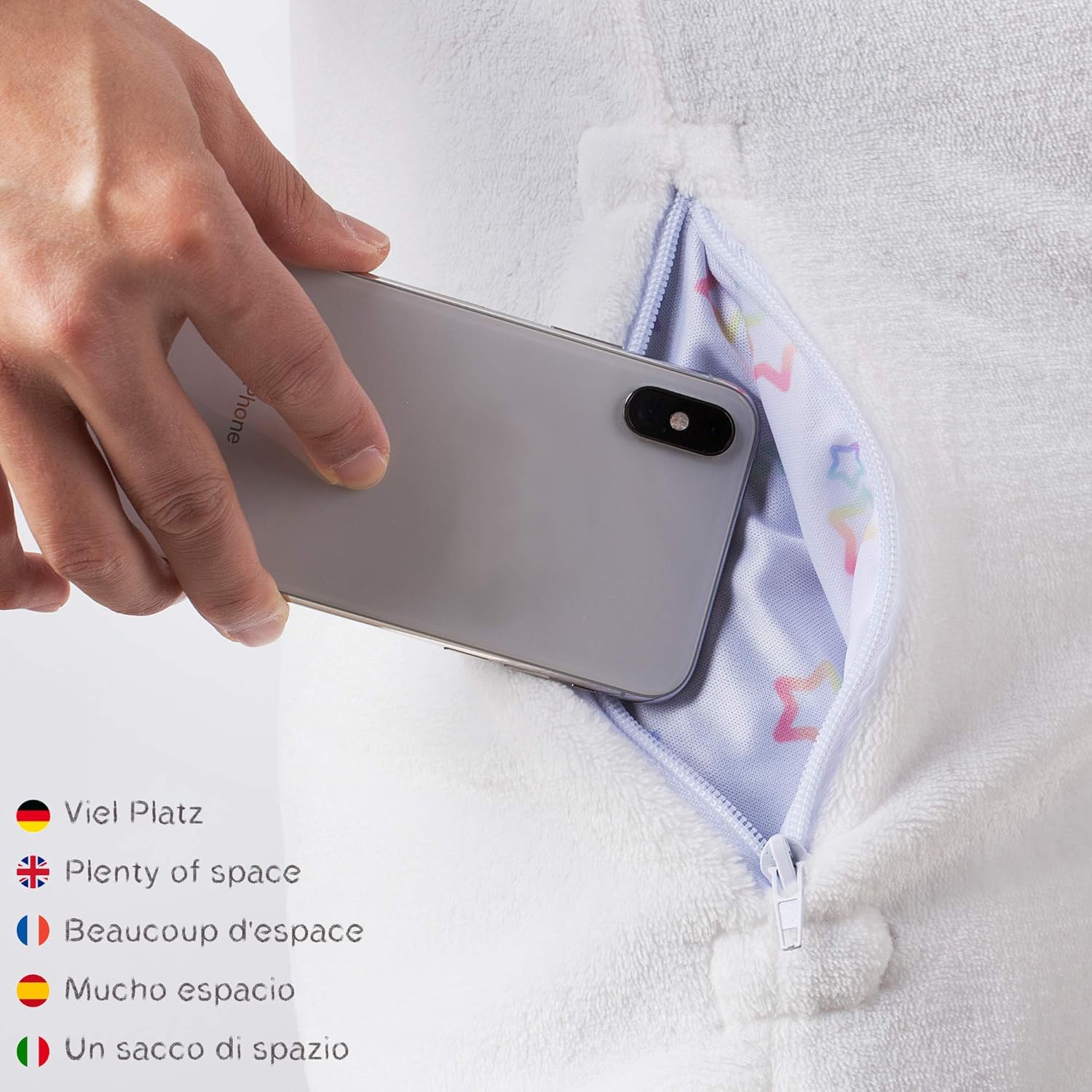 - Flauschig: Der qualitativ hochwertige Einteiler ist super weich und kuschelig. Einfach die Kapuze aufsetzen und zu Hause entspannen