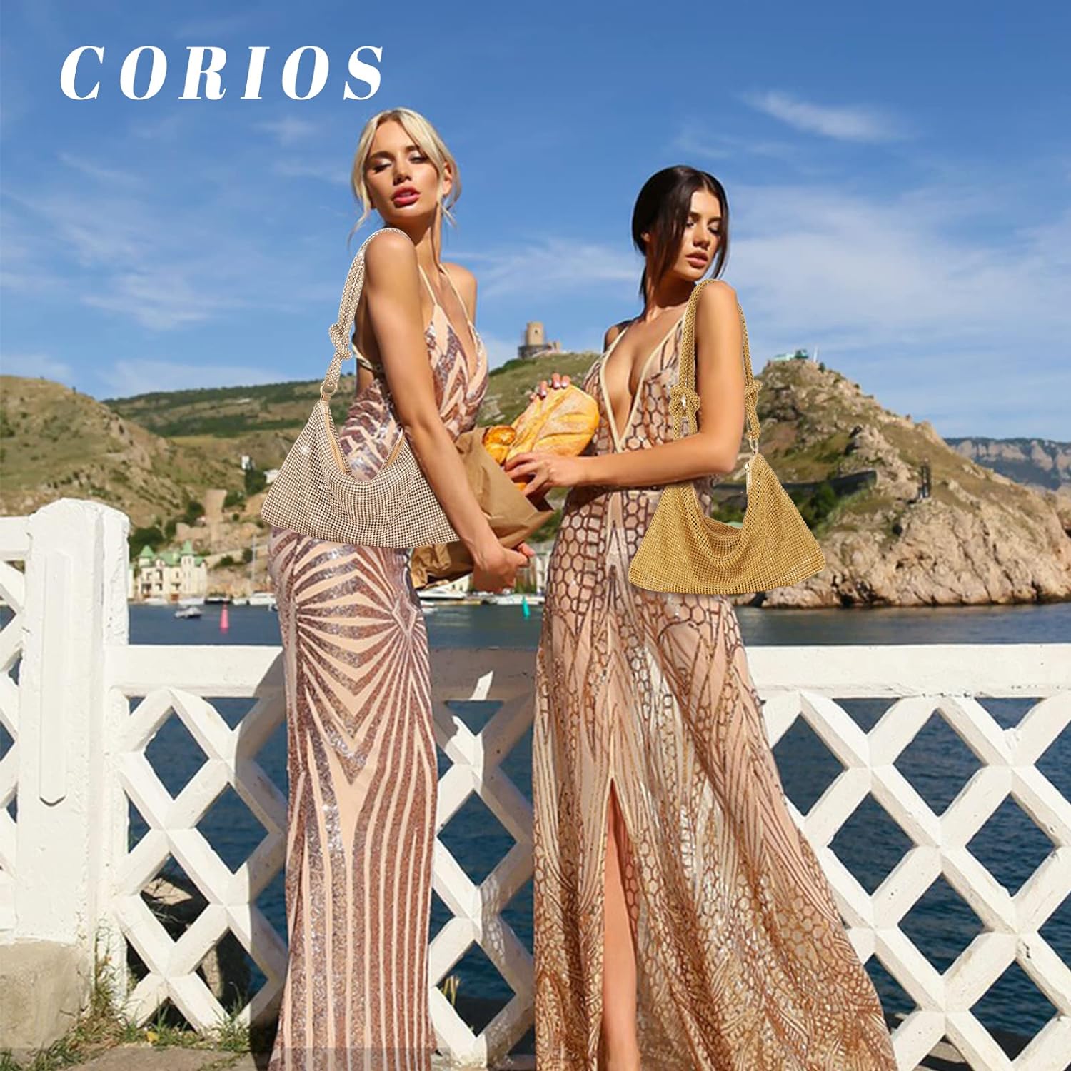 CORIOS Abendtasche Damen Strass Clutch Bag Shiny Diamant Handtasche Strasssteine Schultertasche Glit