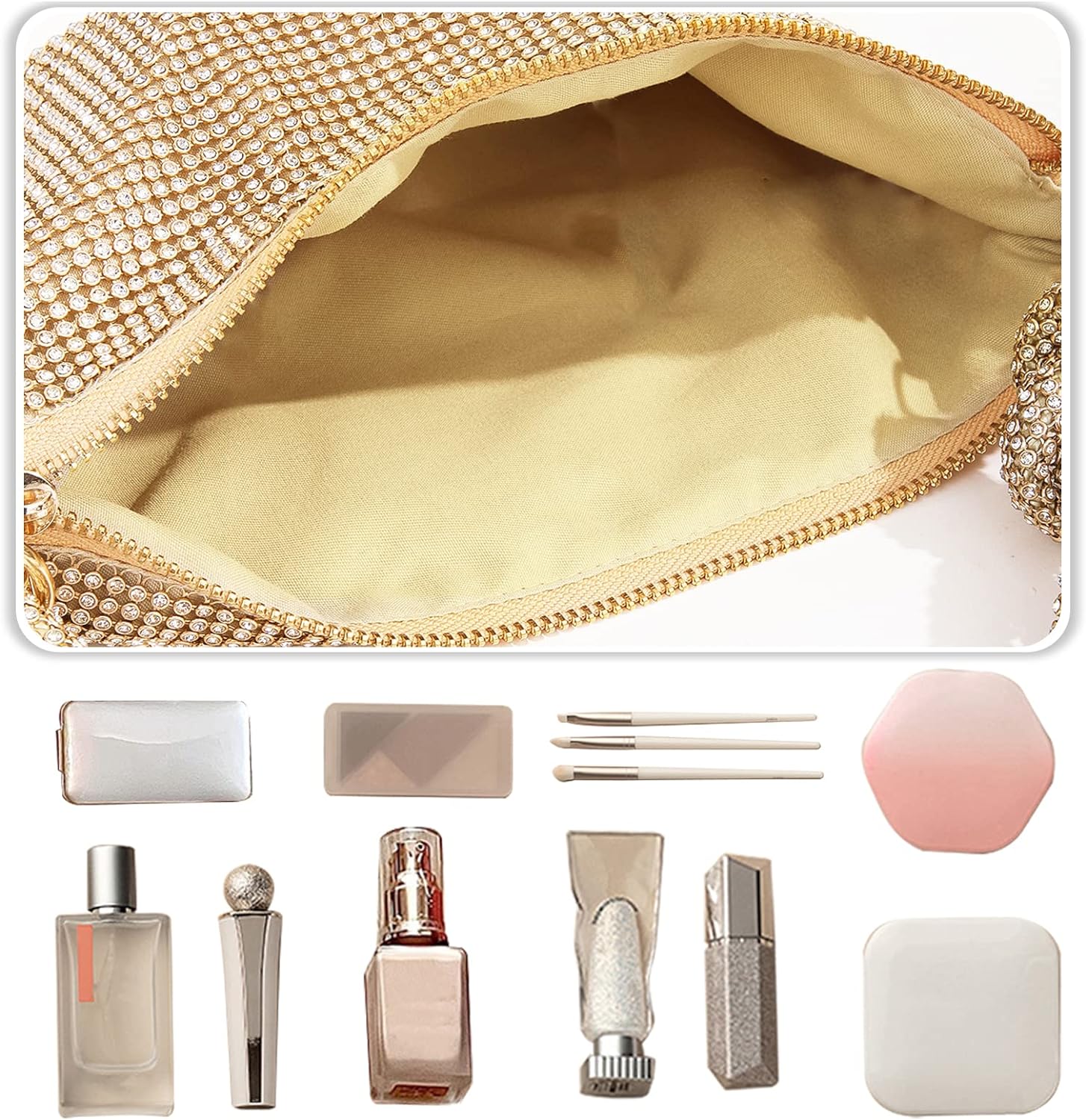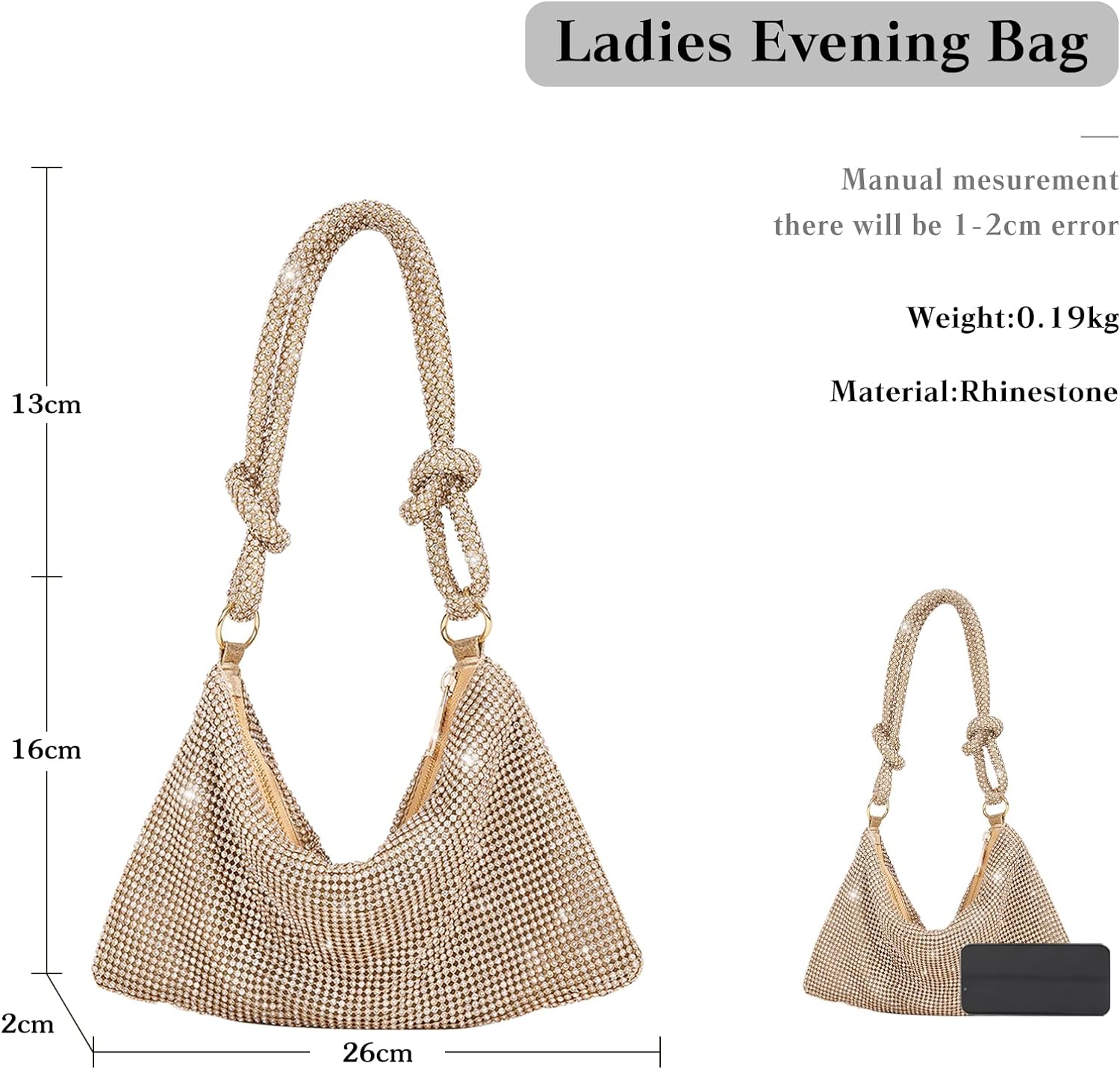 • ✨【KLEINER ABER GERÄUMIGER RAUM】Strass-Taschen Grösse: 26 x 2 x 16cm(Länge * Breite * Höhe). Diese Frauen Banketttasche hat eine Haupttasche. Die Frauen Abendhandtasche ist super süss und glänzend. Die strassbesetzte Handtasche ist klein, aber