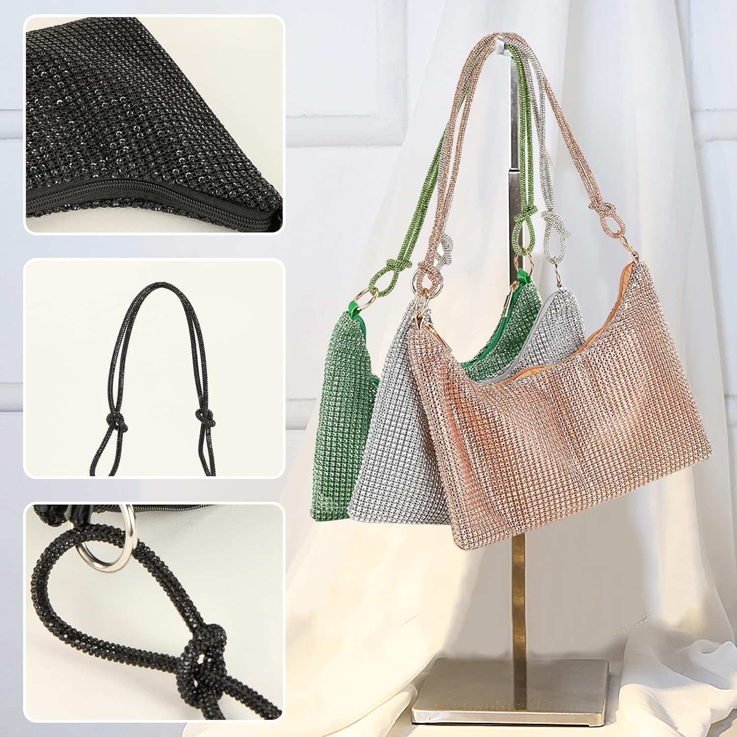 - 【PREMIUM MATERIAL】Diese glitzernde Abendhandtasche ist aus hochwertigen Strasssteinen und Polyesterfutter. Die Kupplungshandtaschen für Frauen sind mit einem Metallreissverschluss ausgestattet, der leicht zu öffnen und zu schliessen ist, so dass