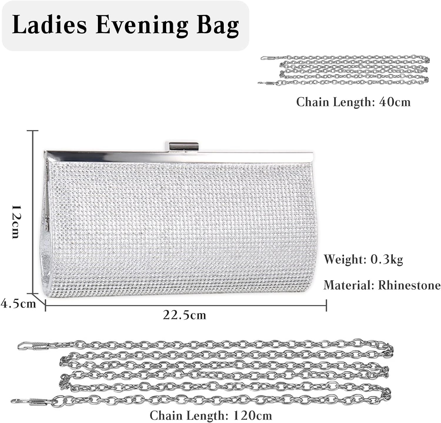 - ☆【Perfect Size】Rhinestone Geldbörsen Grösse: 22.5 x 4.5 x 12cm(Länge * Breite * Höhe). Diese Frauen Banketttasche hat eine Haupttasche und eine innere offene Tasche. Die Frauen Abendhandtasche ist super süss und glänzend. Sie hat genug Platz
