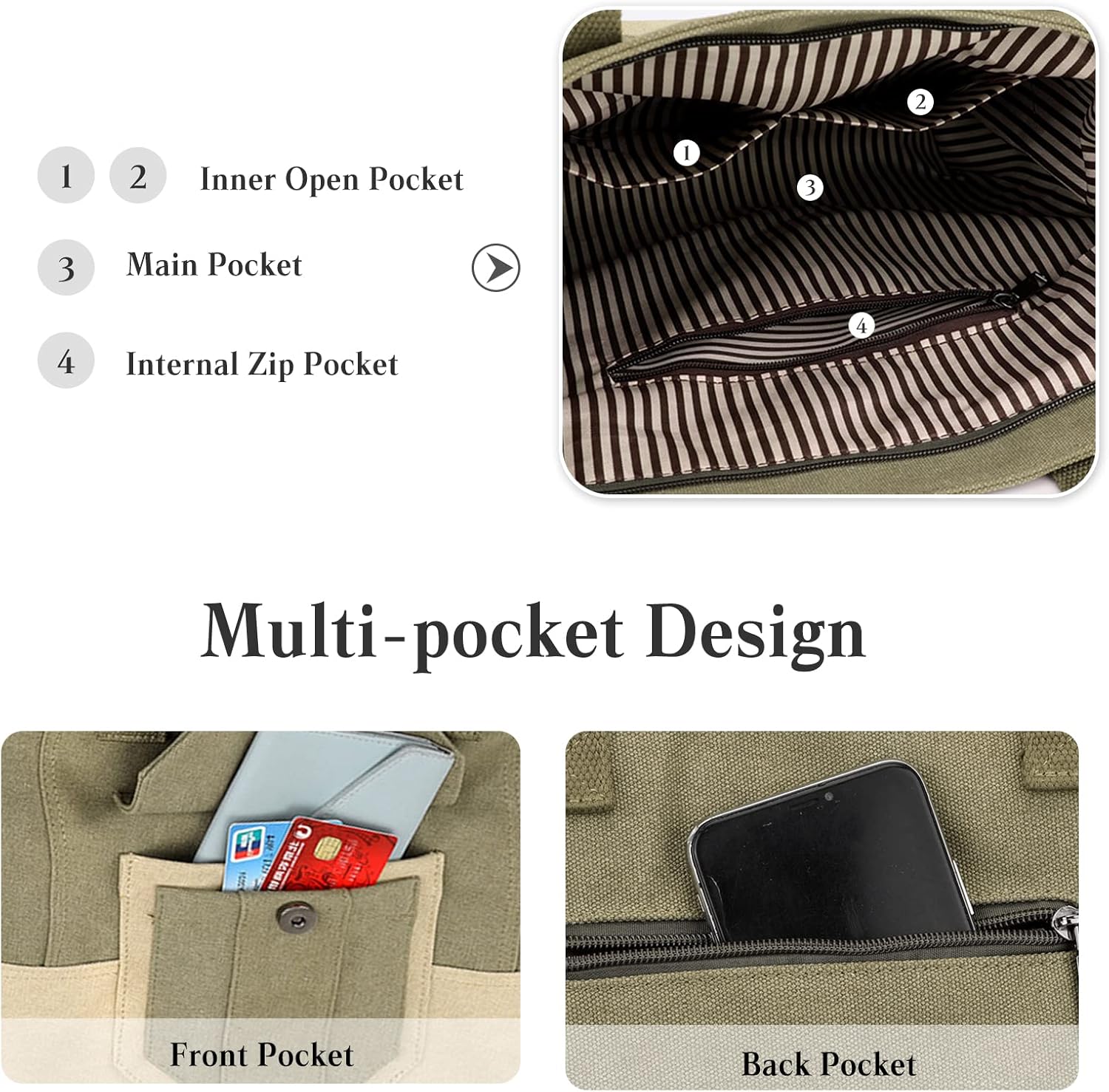 - Material & Handwerk - Die Canvas-Umhängetasche ist aus strapazierfähigem Canvas-Gewebe gefertigt. Das Innenmaterial ist hochwertiges und leichtes Polyester. Der obere Reissverschluss hält die Handtasche geschlossen und hält alle täglichen Sachen