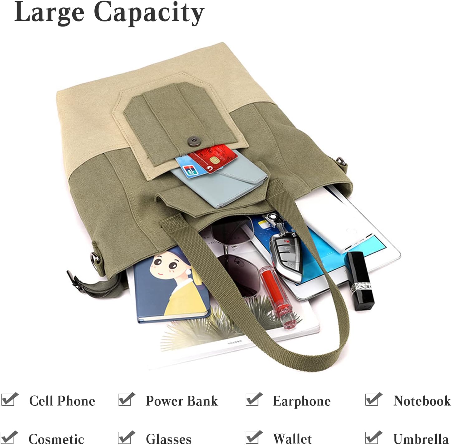 - ※Abmessungen & Struktur--Die Grösse der Tragetasche aus Segeltuch beträgt 26 × 13 × 31 cm (Länge*Breite*Höhe). Grossvolumige Umhängetasche mit 1 Hauptfach (1 internes Reissverschlussfach, 2 offene Innentaschen), 2 Vordertaschen und 1 hintere