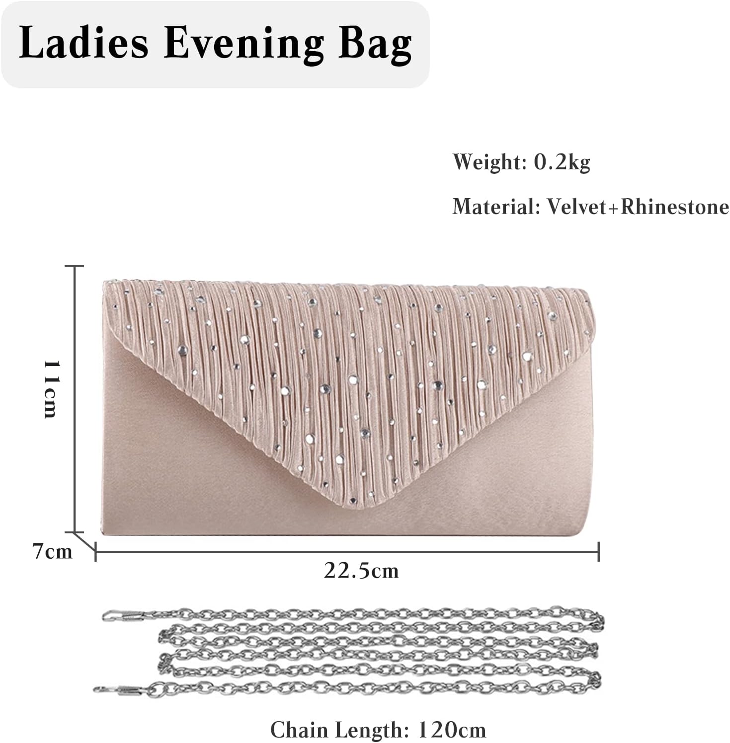 - √【Fabulous Material】Made mit Premium-Samt-Stoff, verziert mit verschiedenen Grössen funkelnden Strasssteinen alle über die plissierten Stil Klappe Oberfläche. einzigartige Umschlag förmigen Design mit Hardware-Knopfverschluss. Subtil plissierte