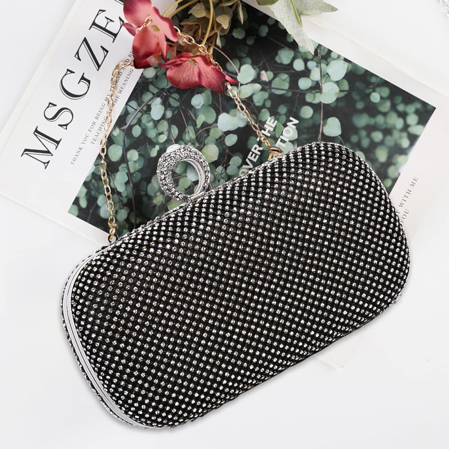 - ♡【Bling Material】Diese Abendtasche verwendet hochwertige klare Strasssteine, die sehr schillernd wie ein Diamant oder Edelstein sind, keine Flecken. K Vergoldung Hardware, die sorgfältig ausgewählt wurde, kein Kratzer, kein Rost auf der