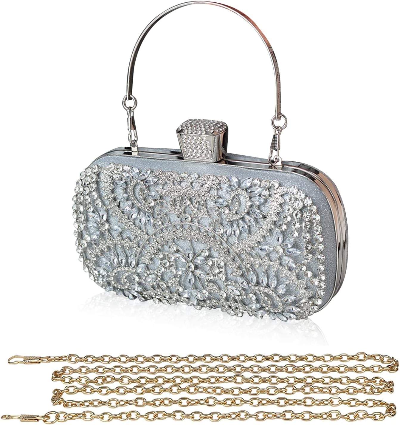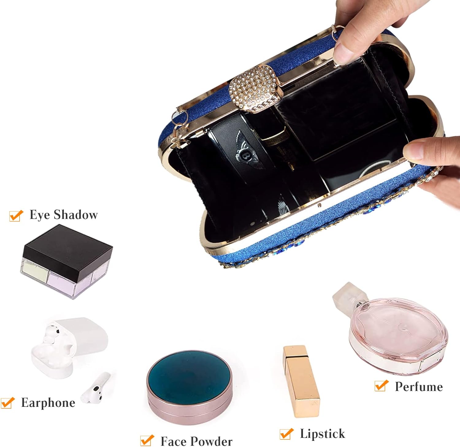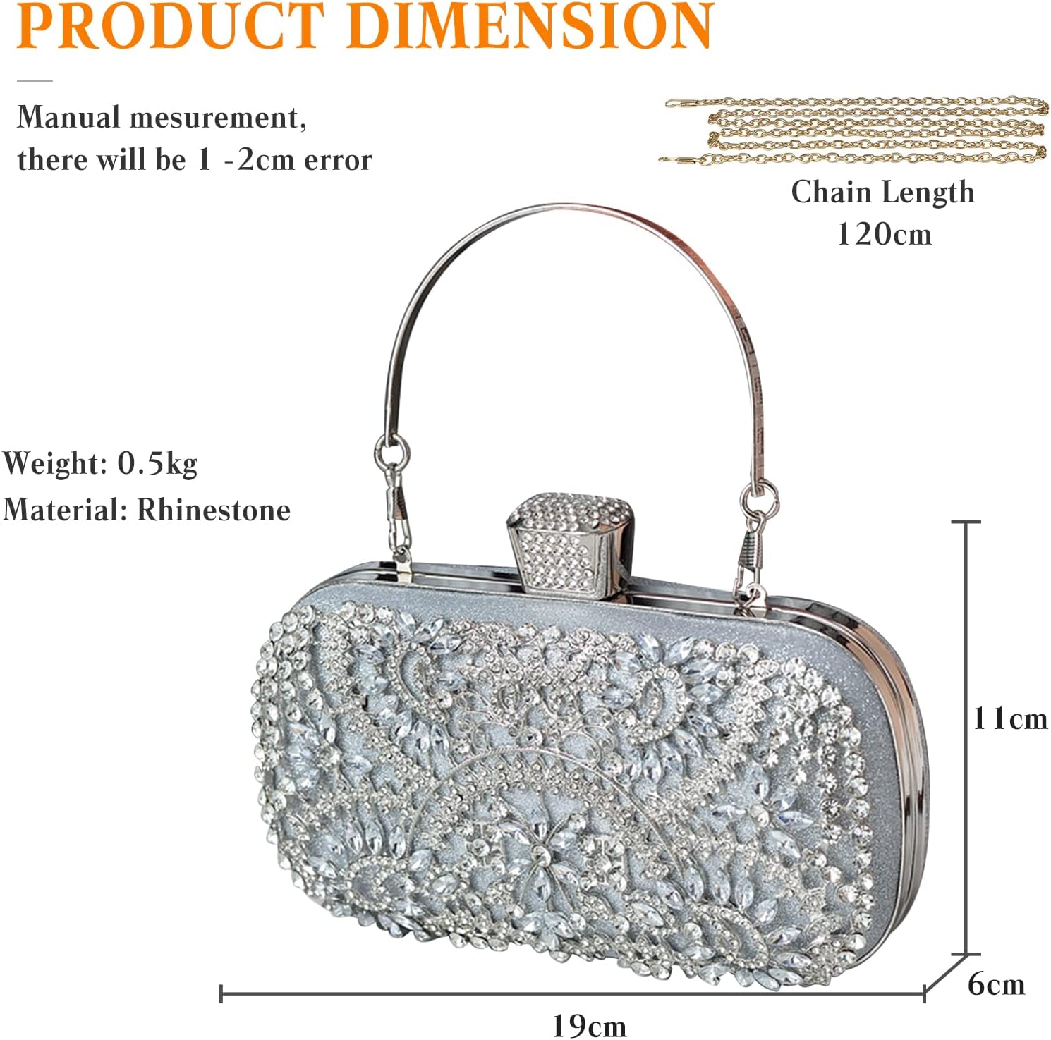 - đăHochwertiges MaterialăDie gesamte Struktur der Tasche besteht aus hochwertiger Hardware-Rahmenkonstruktion und schillernden Strasssteinen. Das Innere dieser Abend Clutch ist Polyester-Futter. Haltbarer Knopfverschluss an der Oberseite, einfach