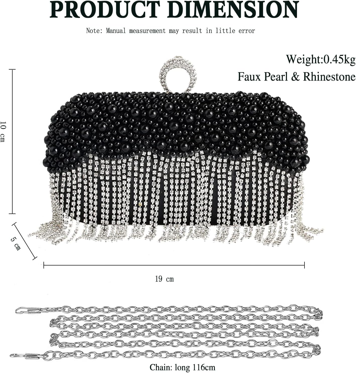 - đ [Exquisites Design] Verziert mit kĂŒnstlichen Perlen und funkelnden Strassquasten, wunderschön, robust und gut verarbeitet. Voller Luxus und edler QualitĂ€t. Schillernde und elegante Handtasche fĂ€ngt alle umliegenden Augen ein, passt gut zum