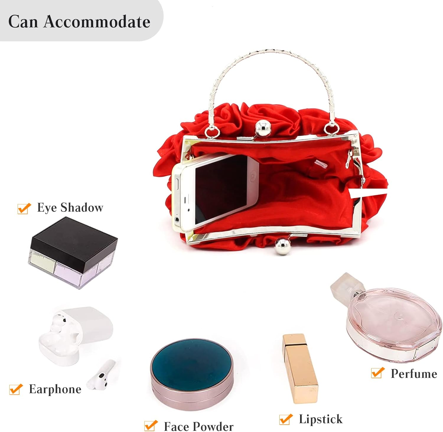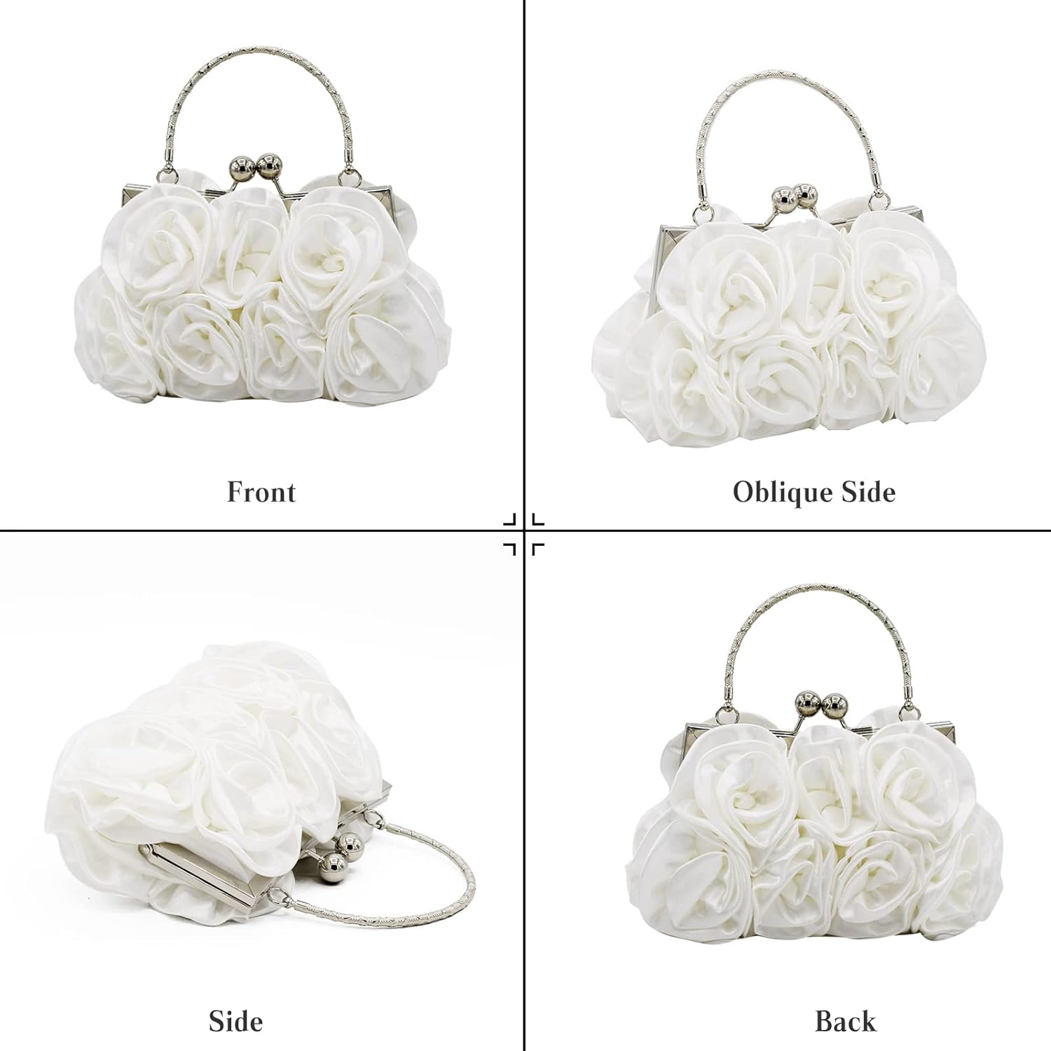 - 🌹Geeignete Anlässe--Diese Clutch Bag verwendet Satinblumen als äussere Dekoration. Es hat eine modische Schönheit und einzigartiges Design. Elegante und romantische Abendhandtasche ist perfekt für viele Gelegenheiten, wie Party, Hochzeit,