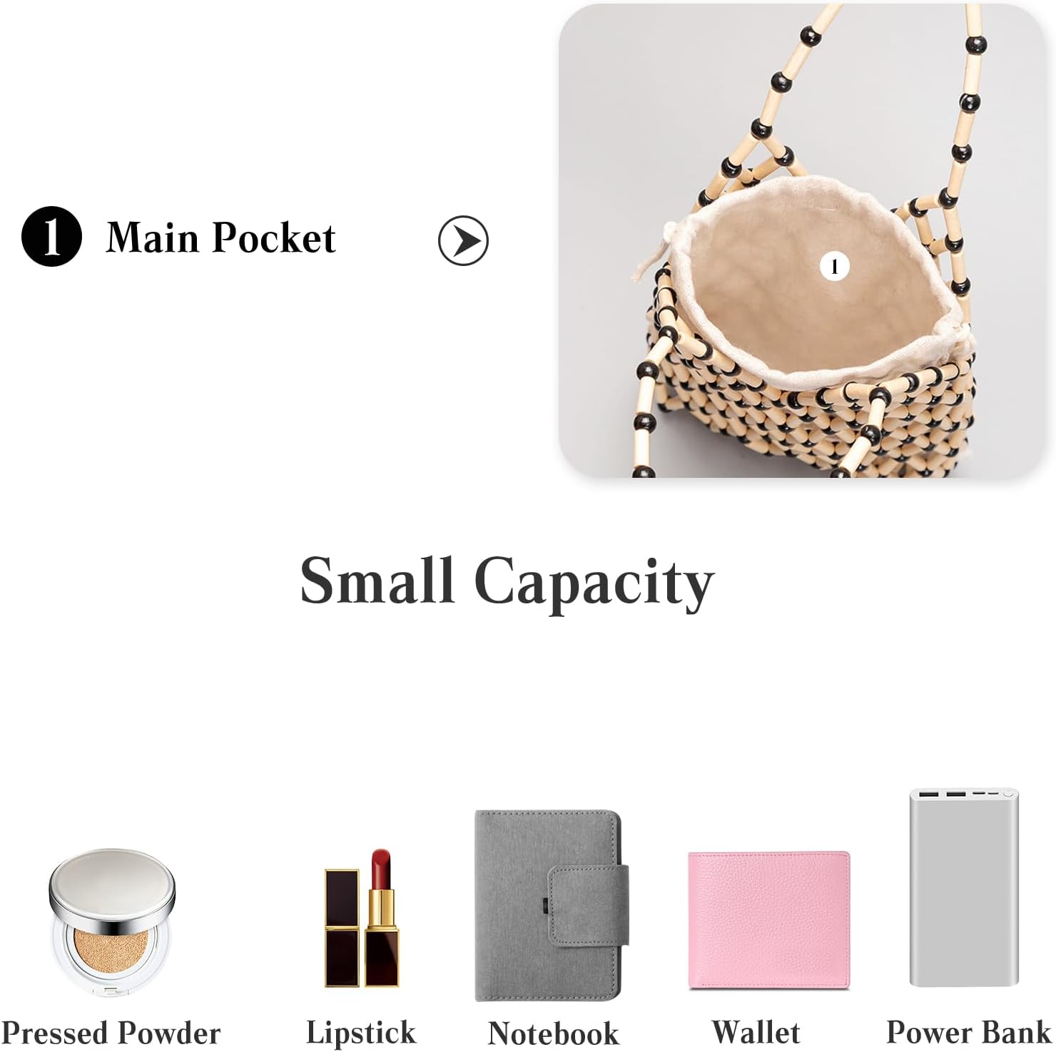 - ✨✨【Hochwertiges Material】Die äussere Schicht ist sorgfältig von Hand aus Ahornholz und Perlen gewebt. Die Innentasche ist aus Segeltuch gefertigt. Bequem zu tragen, leicht, langlebig und zart. Angelschnur handgefertigte Perlen, nicht in