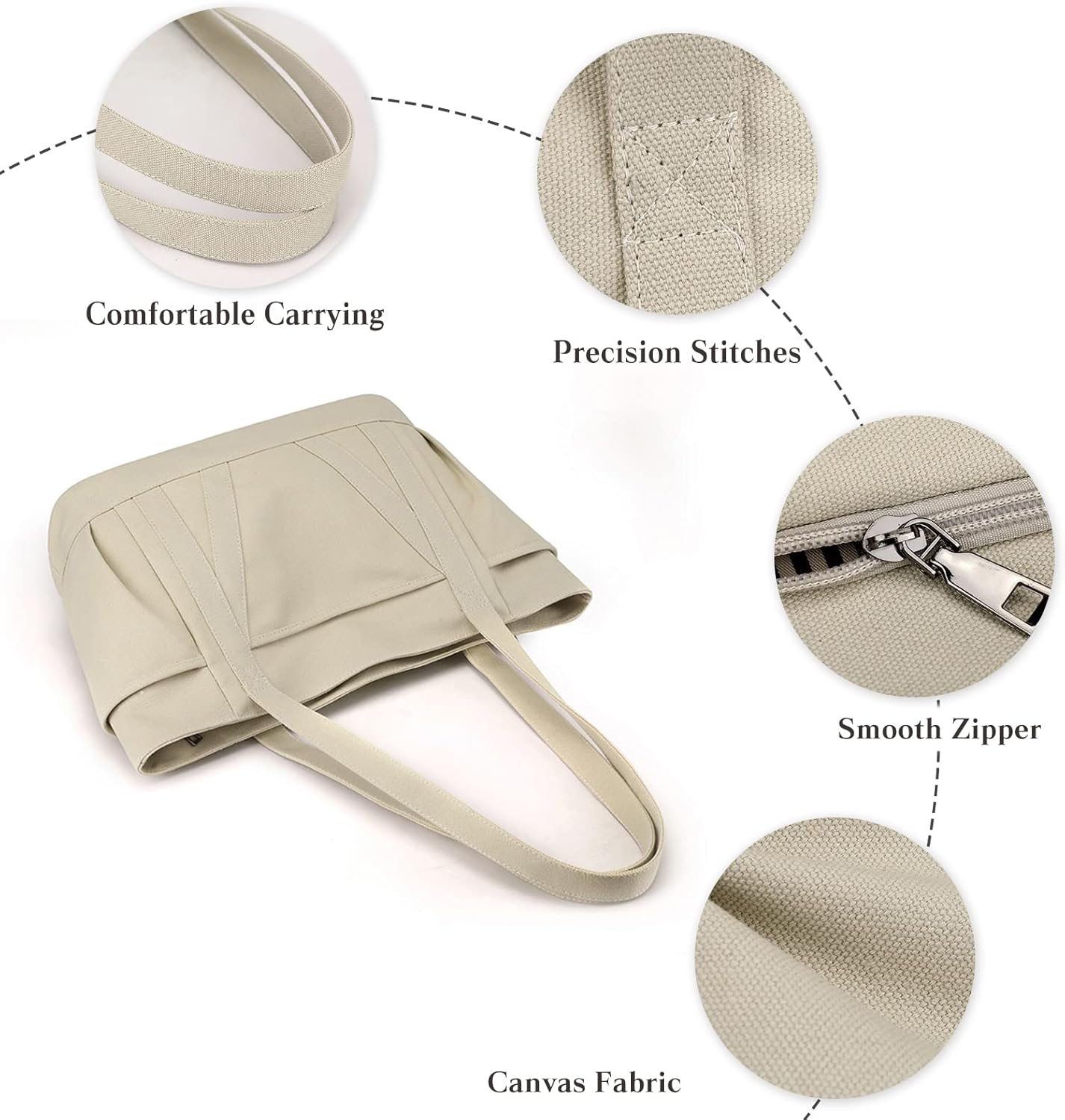 - đăDurable MaterialăDie Canvas-Handtasche wurde aus hochdichtem Canvas, weich und leicht; langlebiges Polyesterfutter. Ausgestattet mit einem oberen Reissverschluss, der Ihre Sachen sicher und sicher hĂ€lt. Die strapazierfĂ€hige Tasche bietet eine