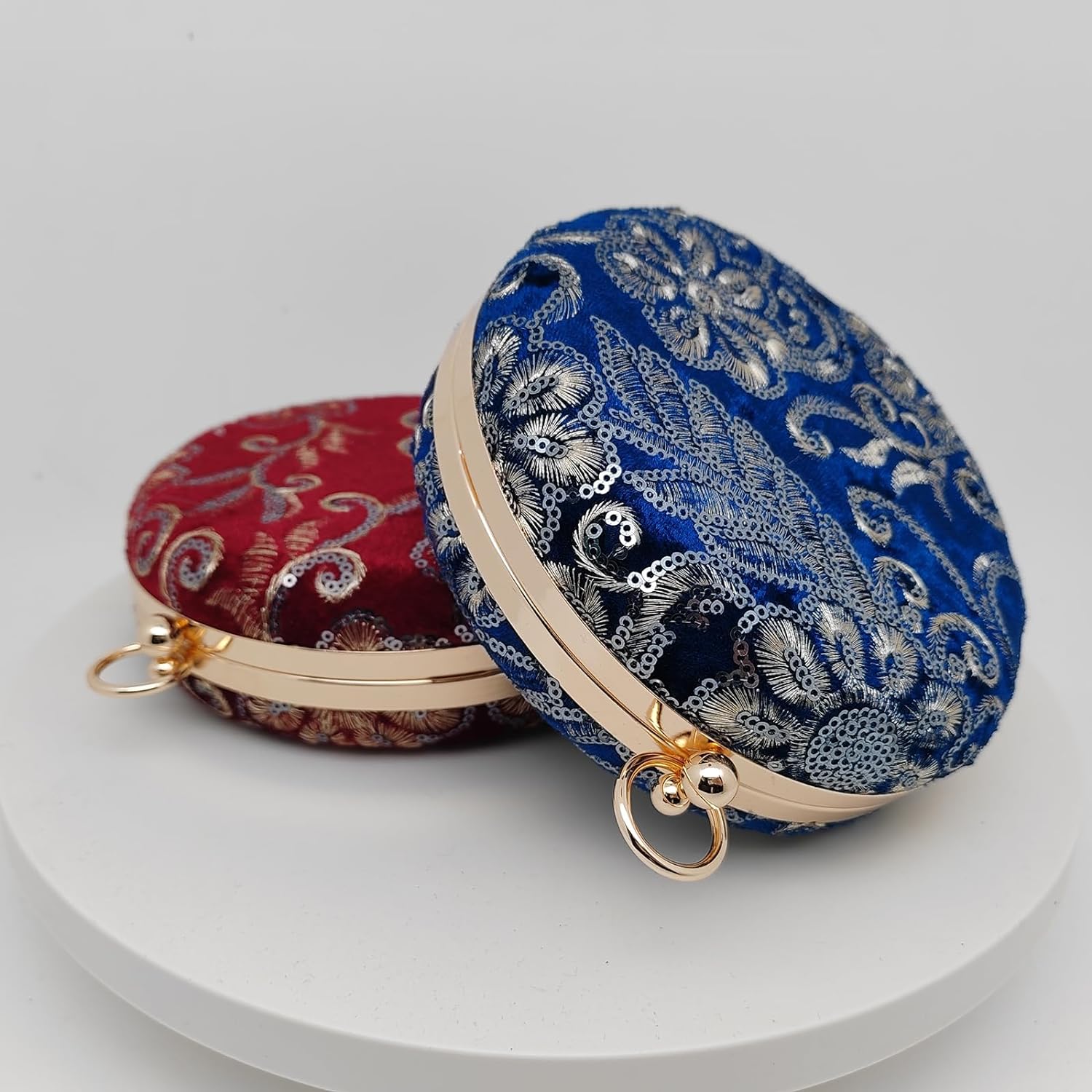 - đExquisites Design-Entworfen in runder Form und verziert mit voller FlĂ€che aus weichem Samtstoff, wird diese elegante Abendtasche Sie wĂ€hrend Ihres besonderen Anlasses zum Strahlen bringen. Diese stilvolle Clutch-Tasche ist von QualitĂ€t gemalt