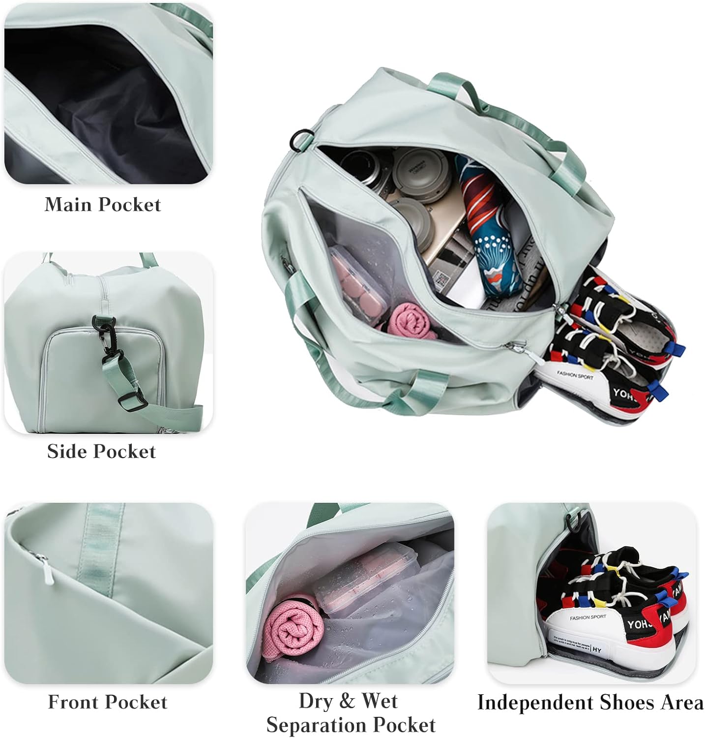 - 【Multiple Pockets Travel Bag】Der Sport Turnbeutel hat 1 geräumiges Hauptfach + 1 trockenes und nasses separates Fach + 1 unabhängiges Schuhfach. Der Sport Turnbeutel ist aus hochdichtem Oxford-Gewebe, das wasserdicht, langlebig und reissfest ist.