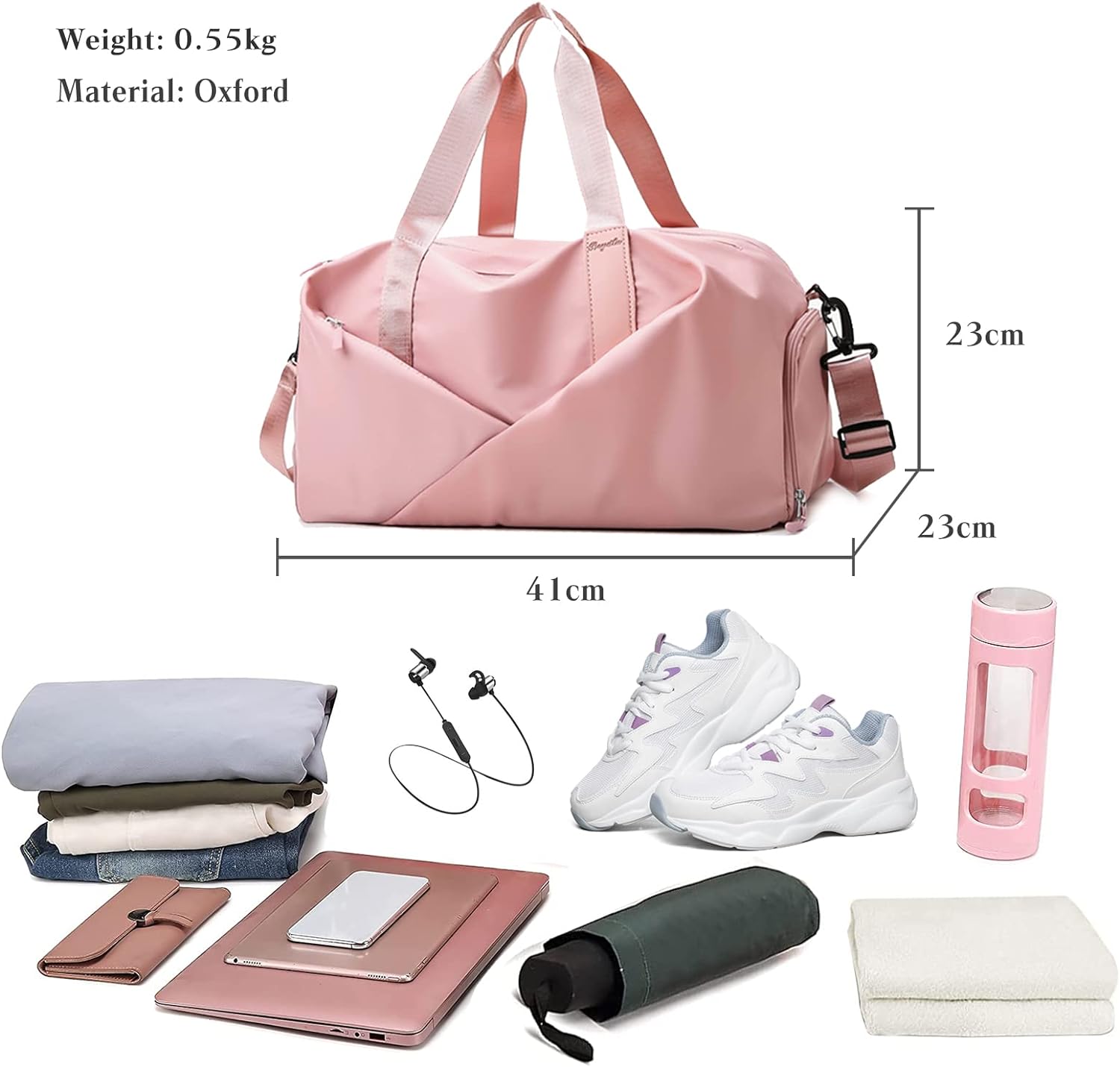 - 【Large Capacity Holdalls Bag】Die Grösse der Wochenendtasche ist 41*23*23cm(L * B * H). Die Wochenendtasche kann Kleidung, Kosmetika, Toilettenartikel, Geldbörsen, Schlüssel, Kopfhörer, Mobiltelefone, Tablet, Laptop, Akten usw. halten. Das grosse