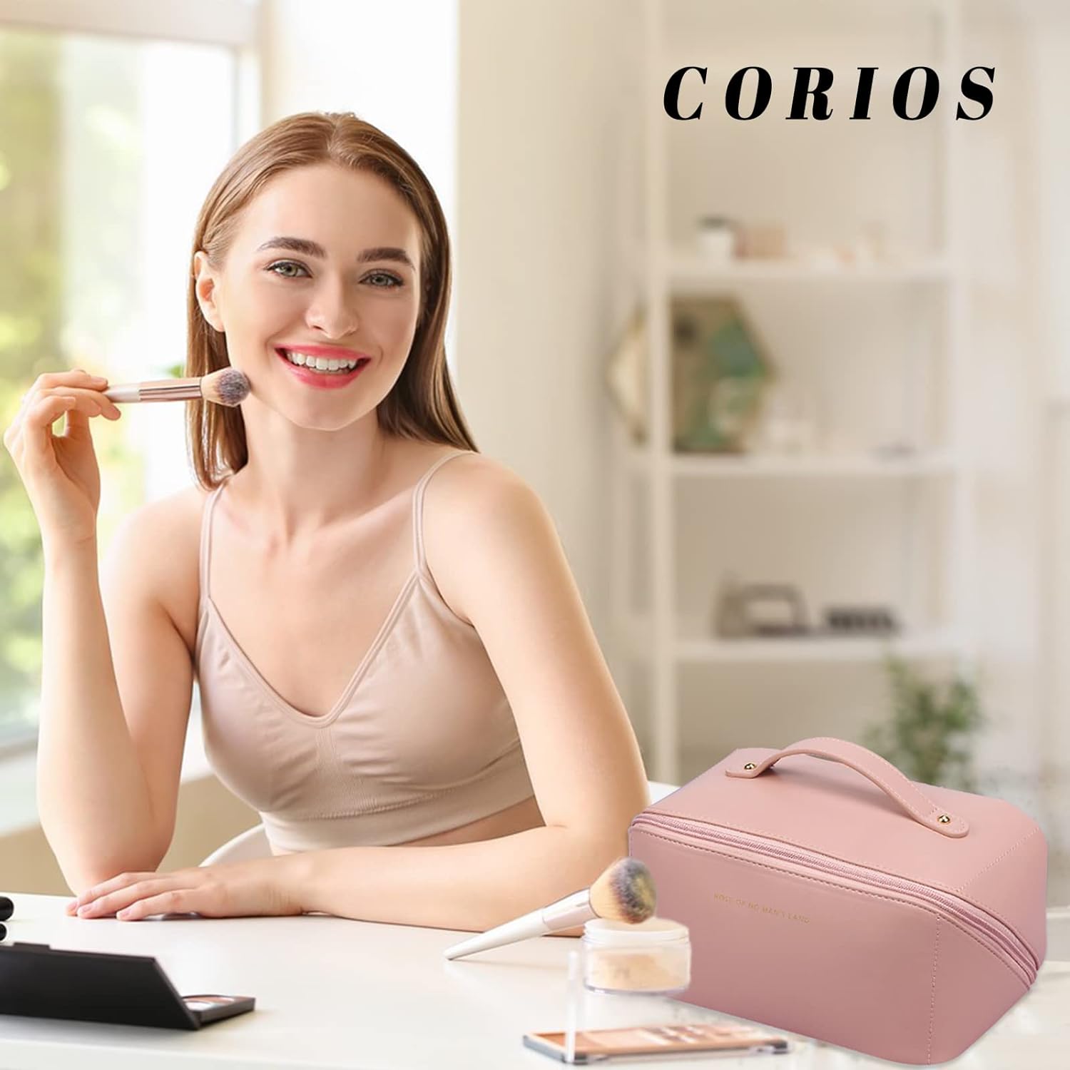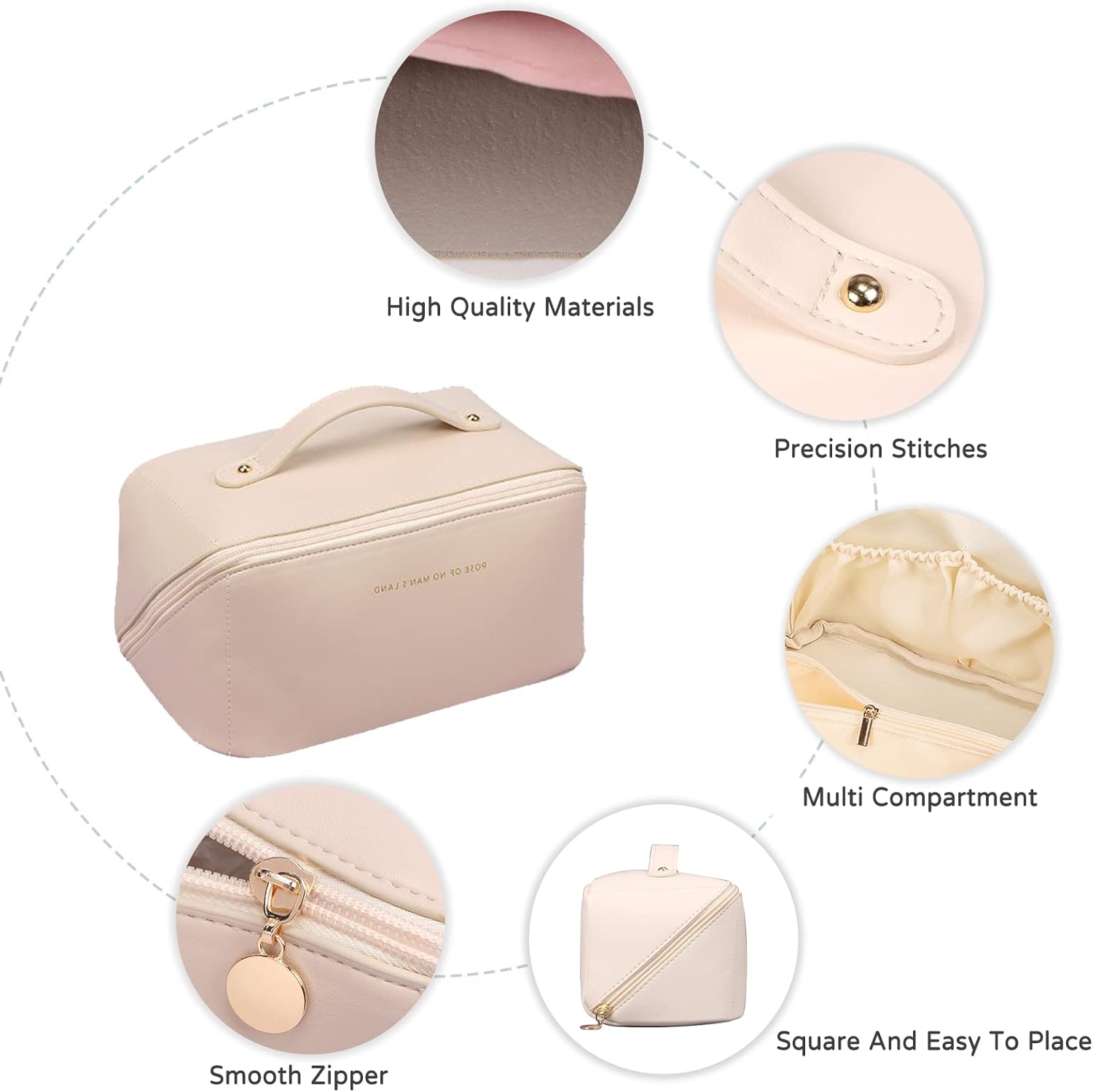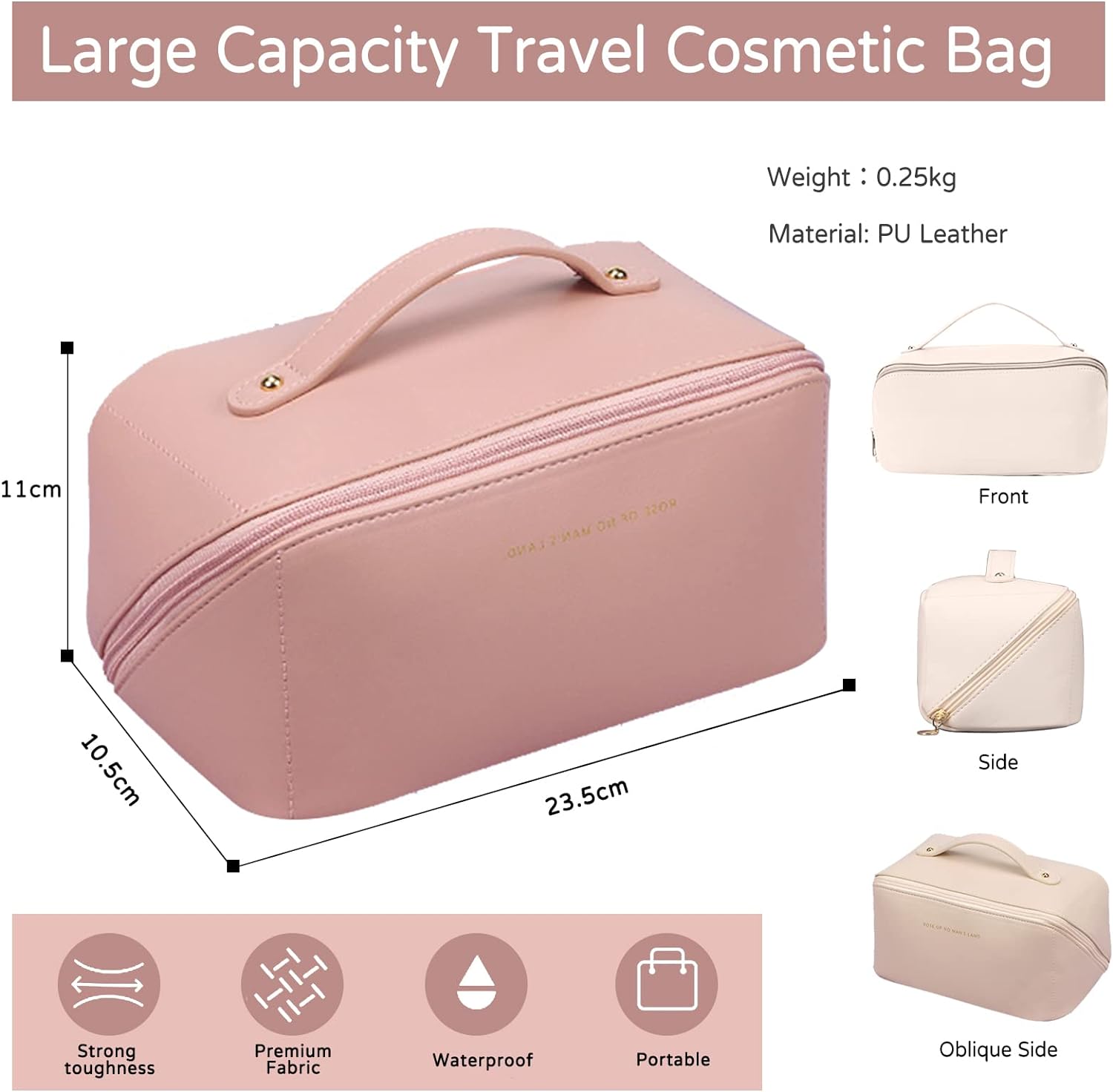 - ✅【Premium-Material】Der kosmetische Beutel besteht aus hochwertigem PU-Lederstoff, das wasserdicht und langlebig ist. Diese Make -up -Tasche mit grosser Kapazität verfügt über ein festes und tragbares Griffdesign, das langlebig und leicht zu