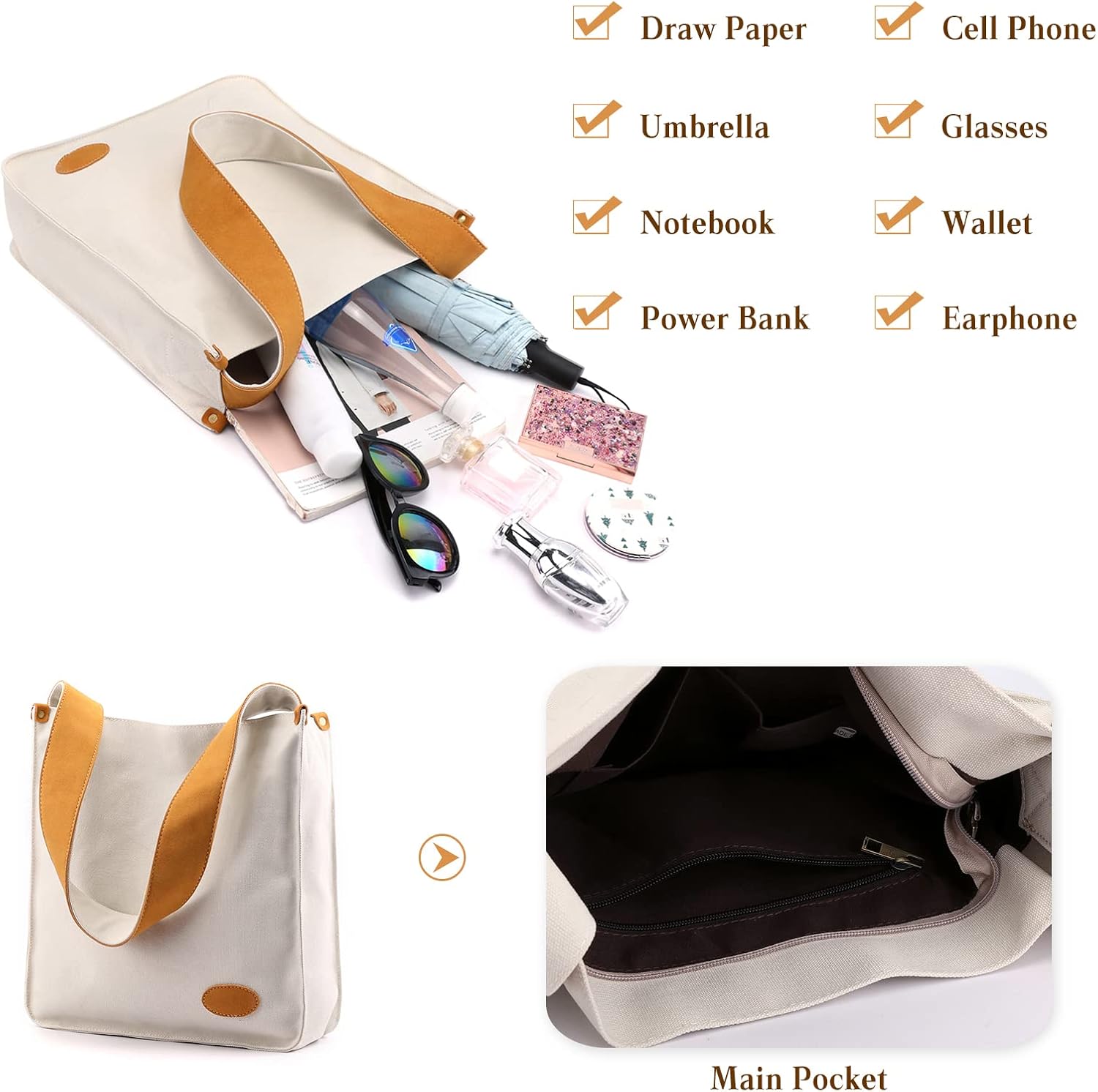 - ★【Lagerkapazität mit grosser Kapazität】Die Grösse der Canvas-Handtasche beträgt 32 × 10 × 34 cm (Länge*Breite*Höhe). Diese Einkaufstasche hat 1 Hauptfach + 1 Innentasche mit Reissverschluss + 2 offene Innentaschen. Der Raum dieser