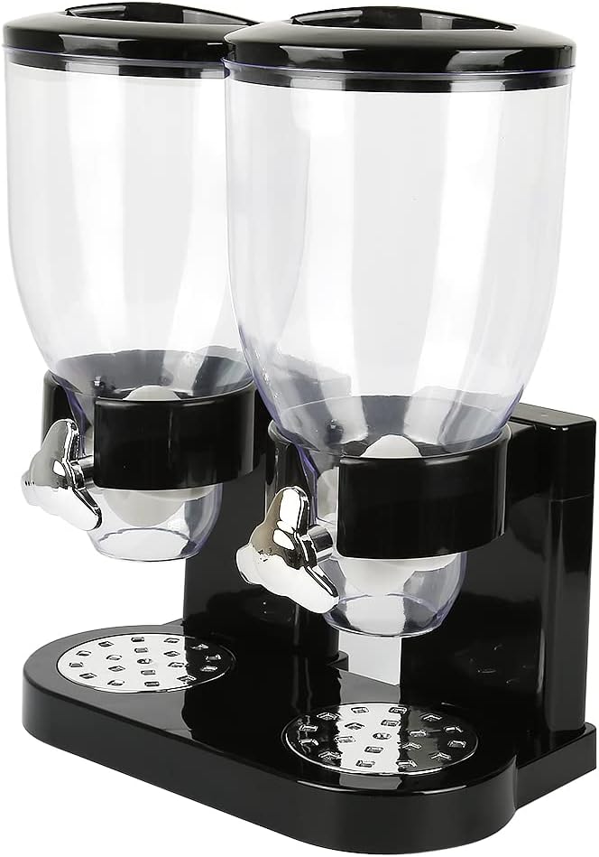 - 🍴 【 Bequeme Bedienung】 ♔: Der Zwei-Korn-Spender ist einfach zu füllen und durch den oberen Einlass zu lagern, indem der Deckel entfernt wird, der mit zwei Bedienelementen ausgestattet ist, wodurch Sie Müsli, Snacks oder andere Trockenfutter