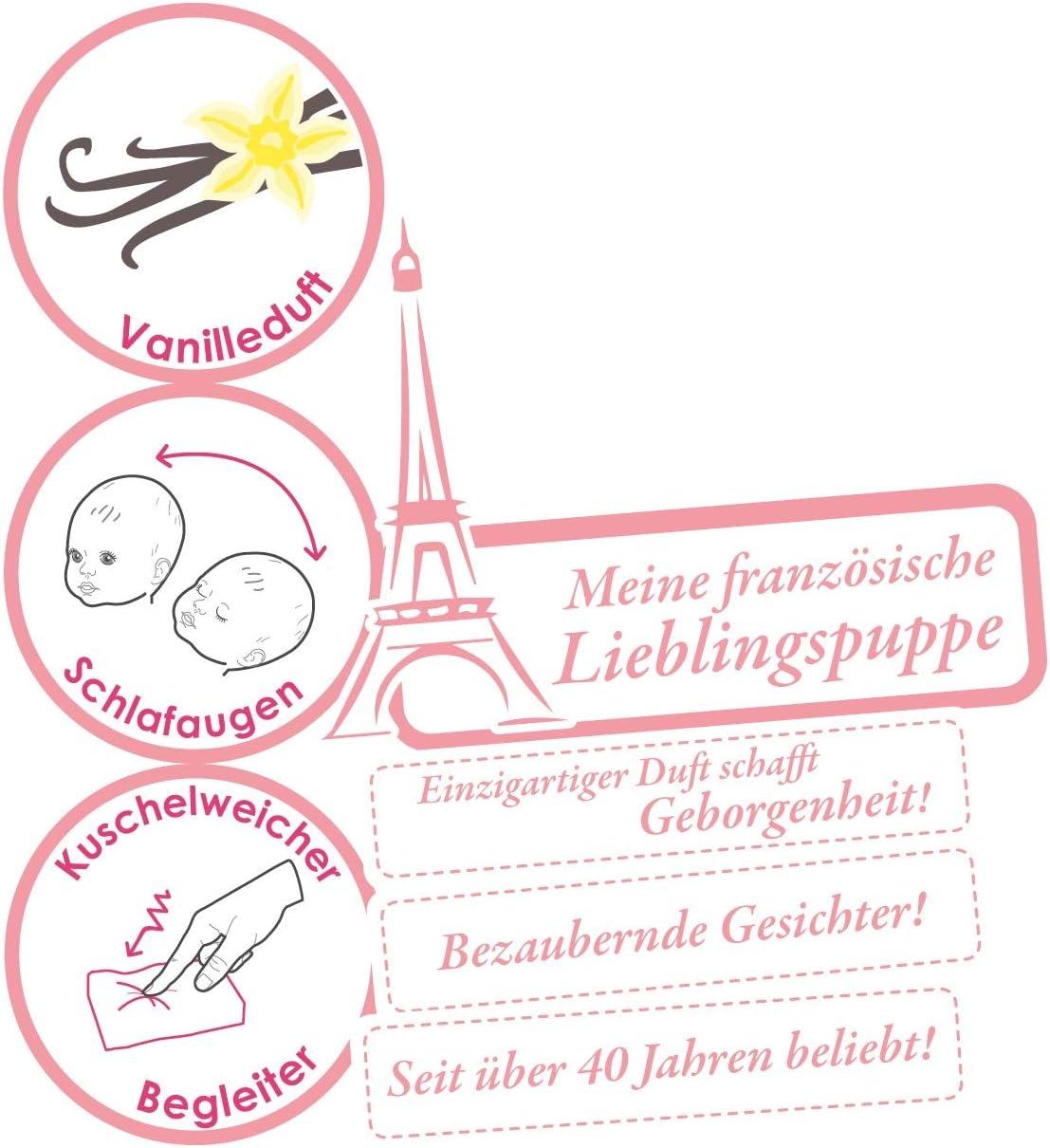 - Charakteristischer Vanilleduft: alle Corolle Puppen riechen angenehm zart nach Vanille