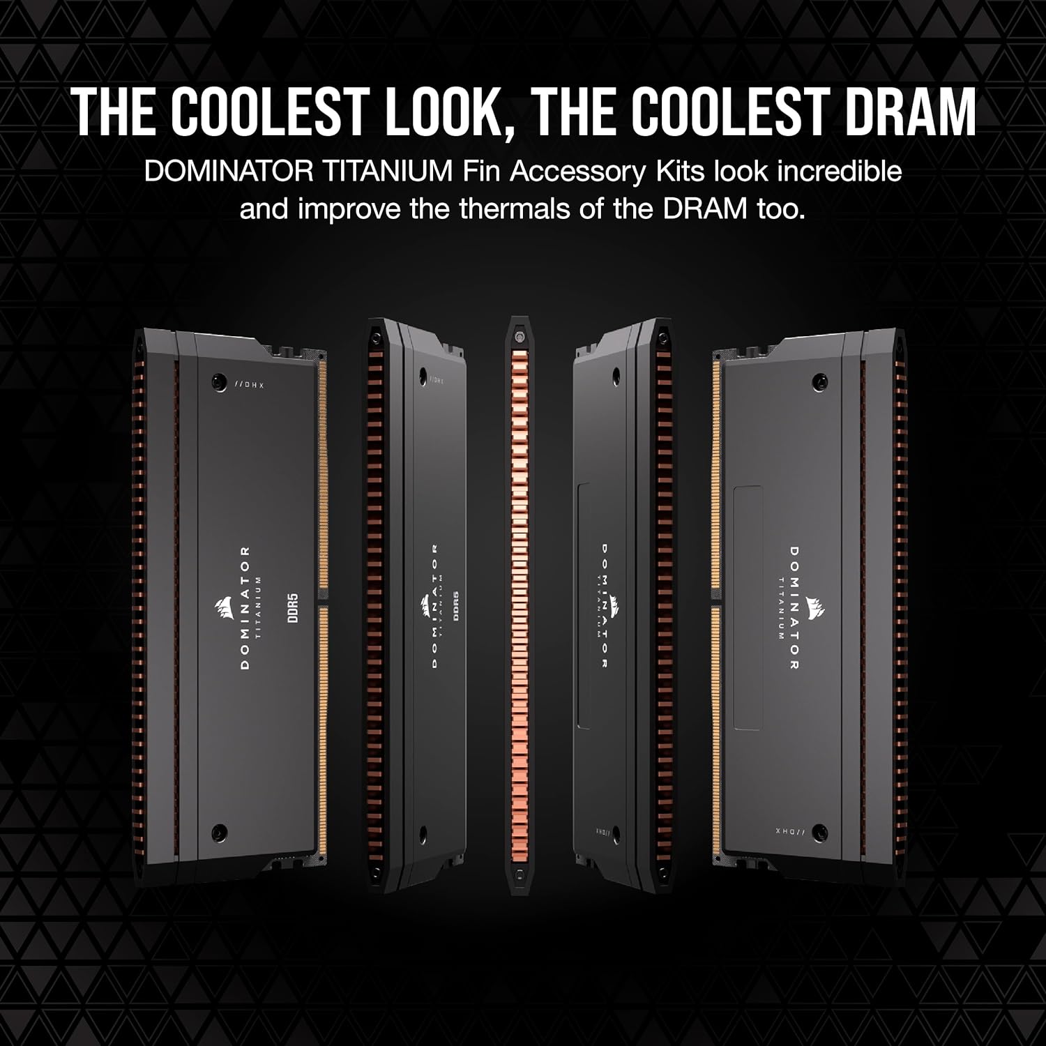 - Das DOMINATOR TITANIUM Fin Accessory Kit enthält ein Paar obere Leisten, die die Ästhetik Ihres DOMINATOR TITANIUM DDR5 DRAM radikal verändern