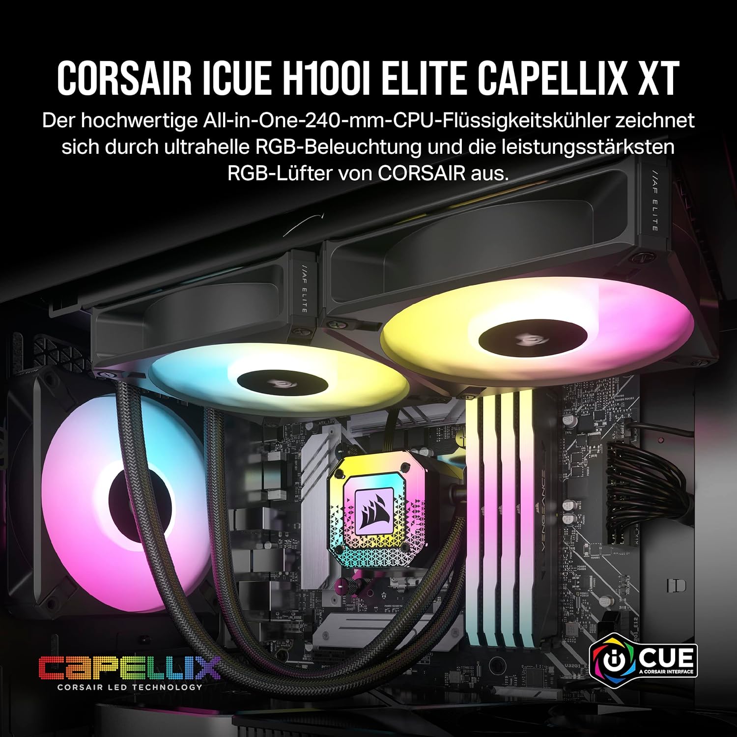 Corsair iCUE H100i ELITE CAPELLIX XT Liquid CPU Cooler - Zwei AF120 RGB ELITE Lüfter - 240mm Radiato