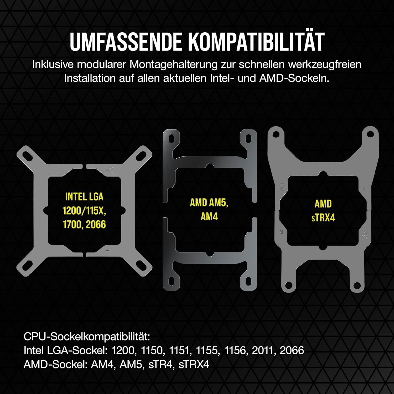 • Kühlen Sie die neuesten CPUs von Intel und AMD mit einem 240-mm-Radiator, zwei 120-mm-Lüftern, einer Kupferkühlplatte und einem effizienten Pumpenkopf, der mit eindrucksvollen CAPELLIX-LEDs ausgestattet ist