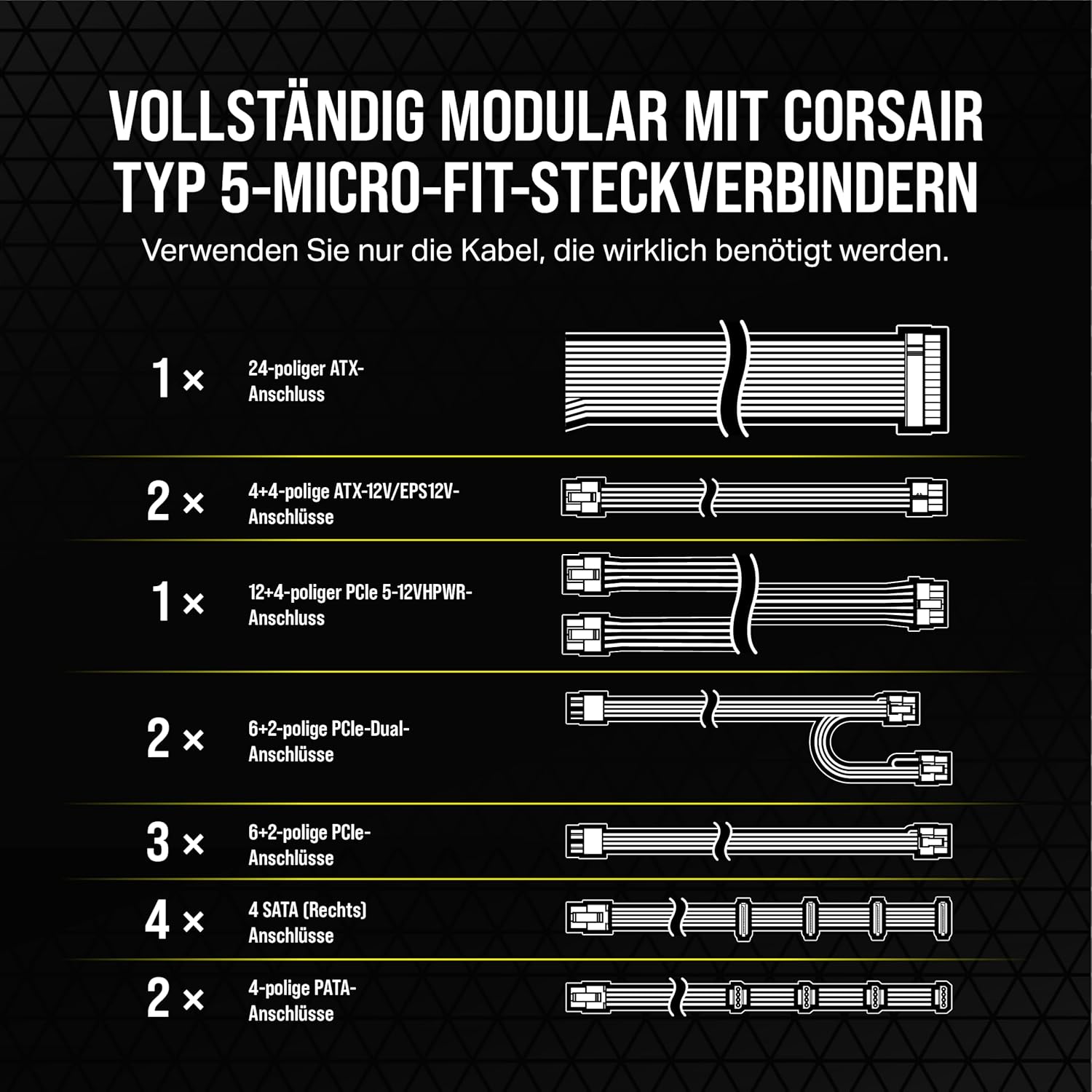 - Corsair RM1000x Shift Vollmodulares ATX-Netzteil - Modulare Seitenschnittstelle - ATX 3.0- & PCIe 5.0-kompatibel - Null-Drehzahl-Lüftermodus - 105°C-Kondensatoren - 80 Plus Gold-Effizienz - Schwarz