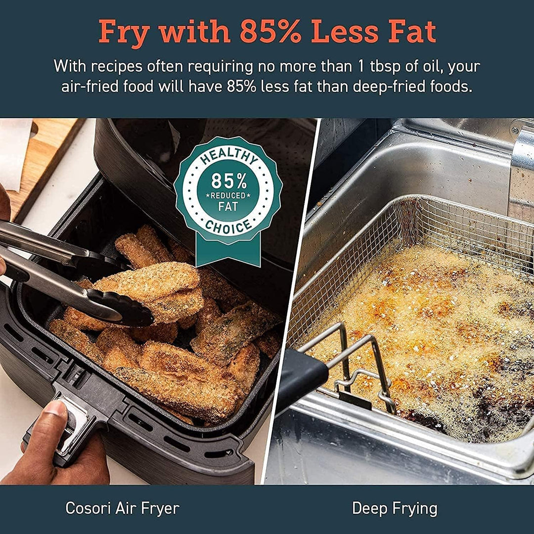 • Essen Sie immer noch kalorienreiche frittierte Lebensmittel? Machen Sie sich gleichzeitig Sorgen über die Fettleibigkeit und Ungesundlichkeit? Wenn Sie sich für eine COSORI Heissluftfritteuse entscheiden, können Sie bis zu 85 % Öl sparen und