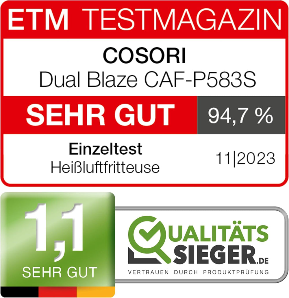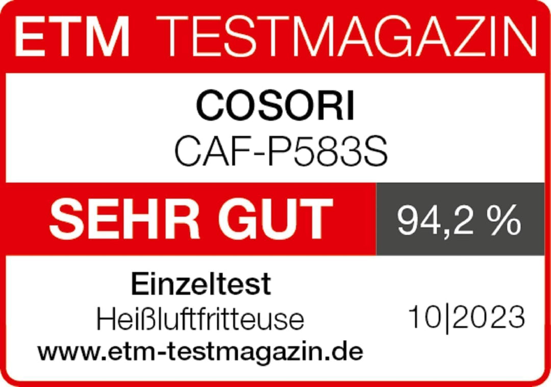 - 【Lebenslange Support】Die Air Fryer ist CE-, RoHS- und LFGB-gelistet. Unsere Deutschlandzentrale ist in Hamburg, kontaktieren Sie uns frei wenn Sie ein Problem mit unserer Heissluftfritteuse haben. COSORI bietet Ihnen lebenslange Support