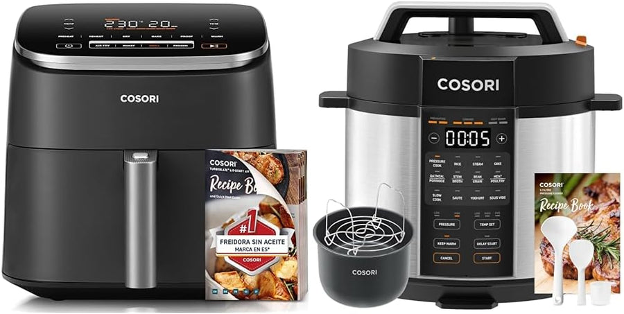 • 【Ein Gerät - schier unbegrenzte Möglichkeiten】 Die COSORI TurboBlaze bietet neun gängige Zubereitungsarten in nur einem Gerät; Neben dem klassischen Heissluftrittieren kannst du mit intelligenten Voreinstellungen Backen, Braten, Grillen und