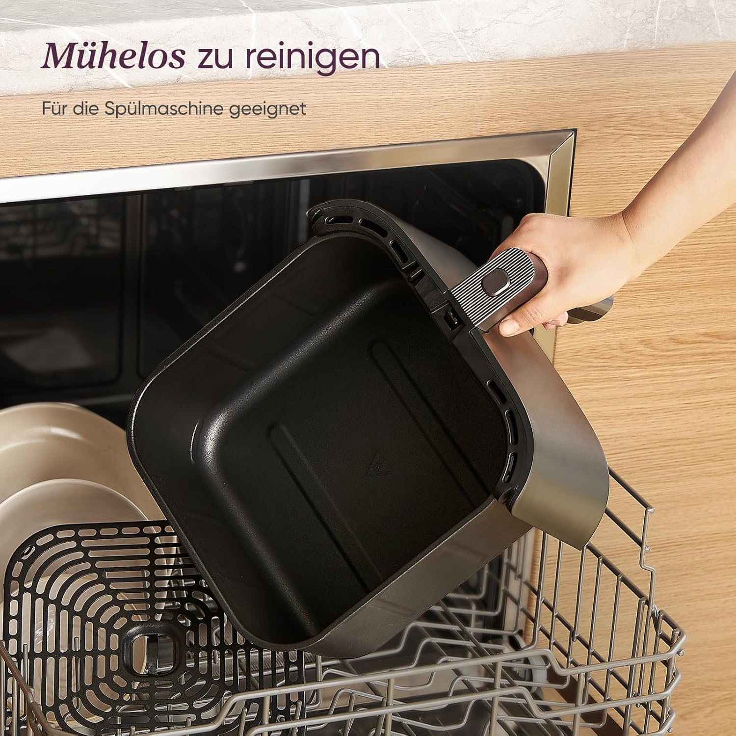 • 𝗘𝗶𝗻𝗳𝗮𝗰𝗵𝗲 𝗥𝗲𝗶𝗻𝗶𝗴𝘂𝗻𝗴: Das antihaftbeschichtete Backblech lässt sich leicht entnehmen und einfach in der Spülmaschine reinigen; auch der Korb ist spülmaschinenfest