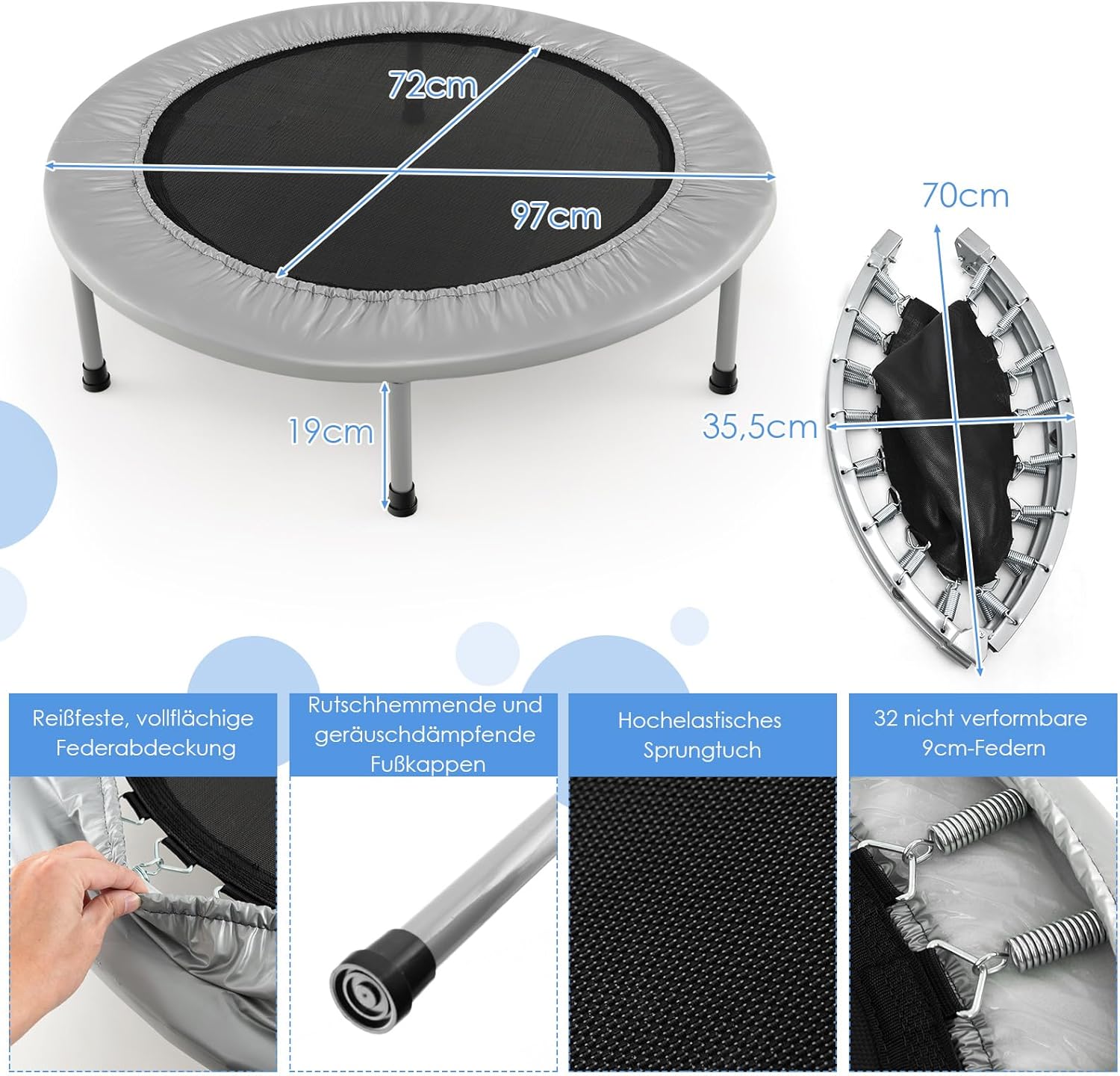 COSTWAY φ97cm Mini Trampolin, Fitness Trampolin faltbar, Kindertrampolin bis 150kg belastbar, Trampo