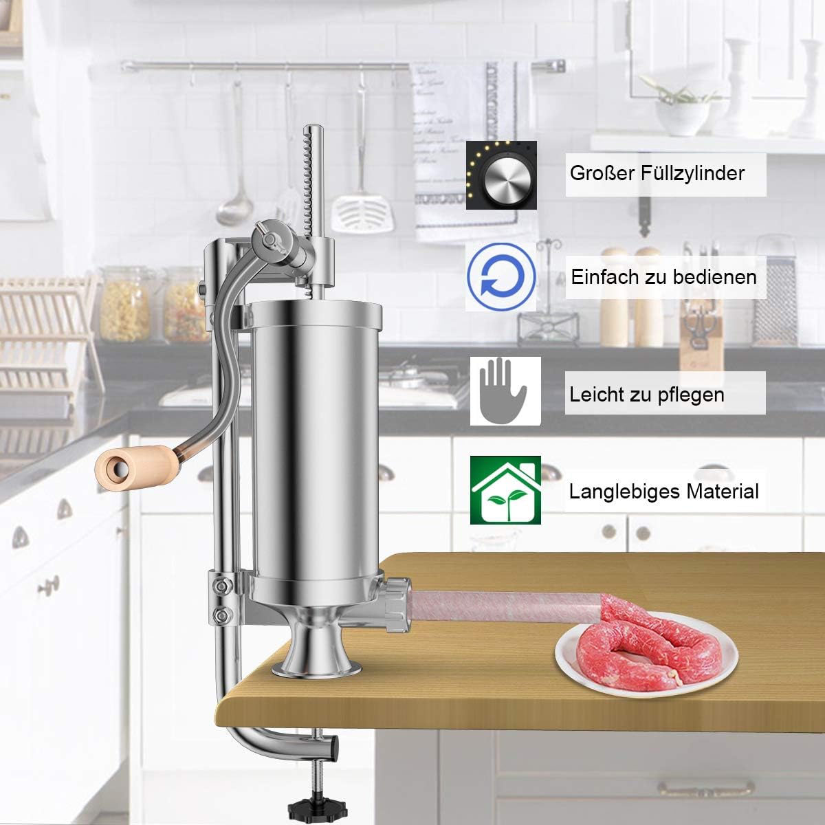 - 🍴【Starke Stabilität】Mit einer Tischklemme kann die Wurstmaschine fest am Tisch verankert werden, gewährleistet eine rutschfeste und angenehme Arbeit.