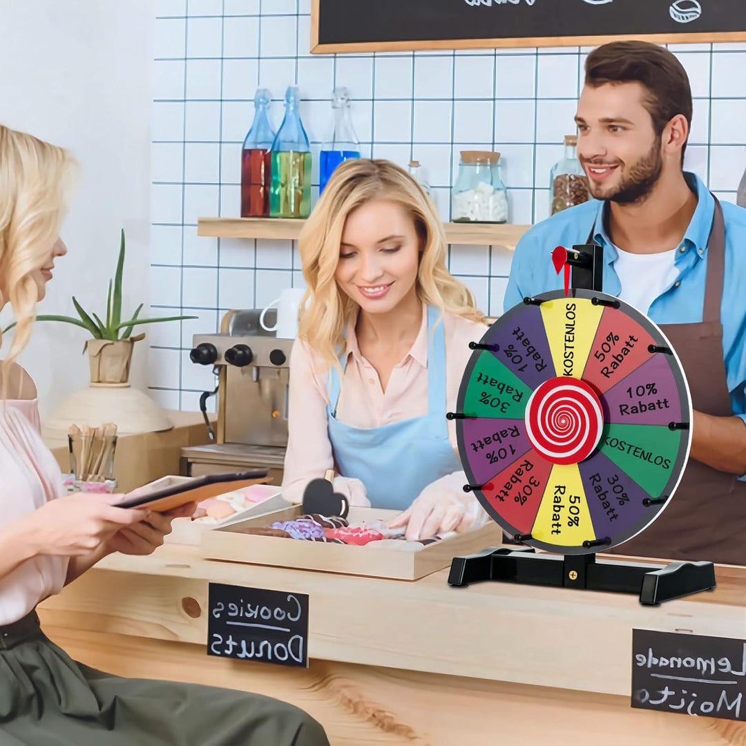 - 【Mehrfachanwendung】 Das Glücksrad eignet sich für verschiedener Spiele, die Glück erfordern, z.B. Partys, Werbeaktionen in Einkaufszentren, Familientreffen und Firmenveranstaltungen.